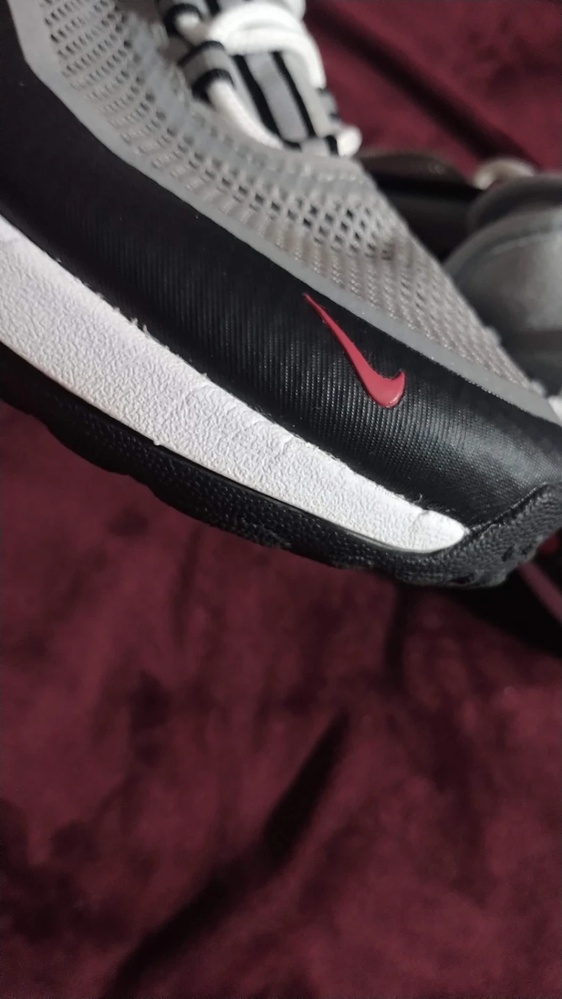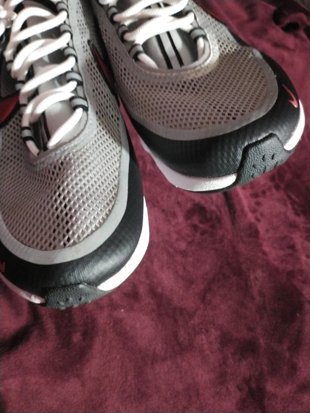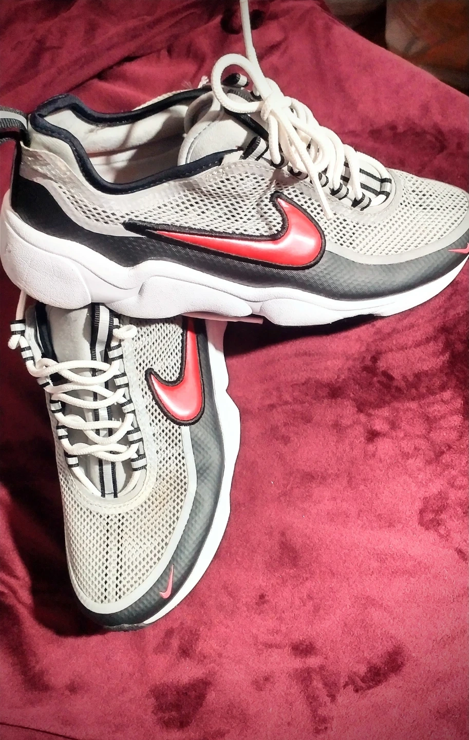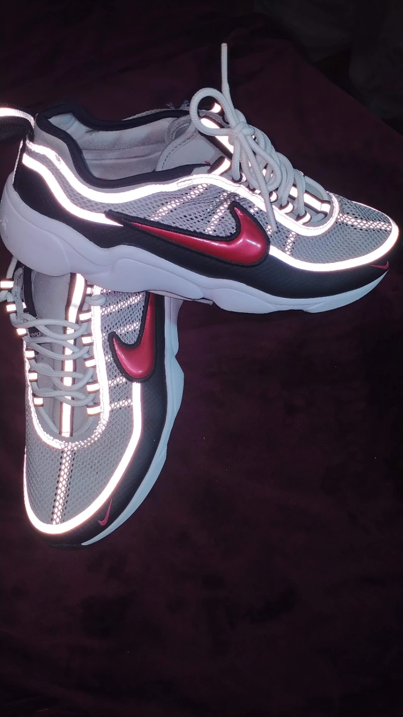 Air Spiridon. 9/10 Condition. Grey, black, and red. Mesh upper with reflective accents. Lace-up closure.