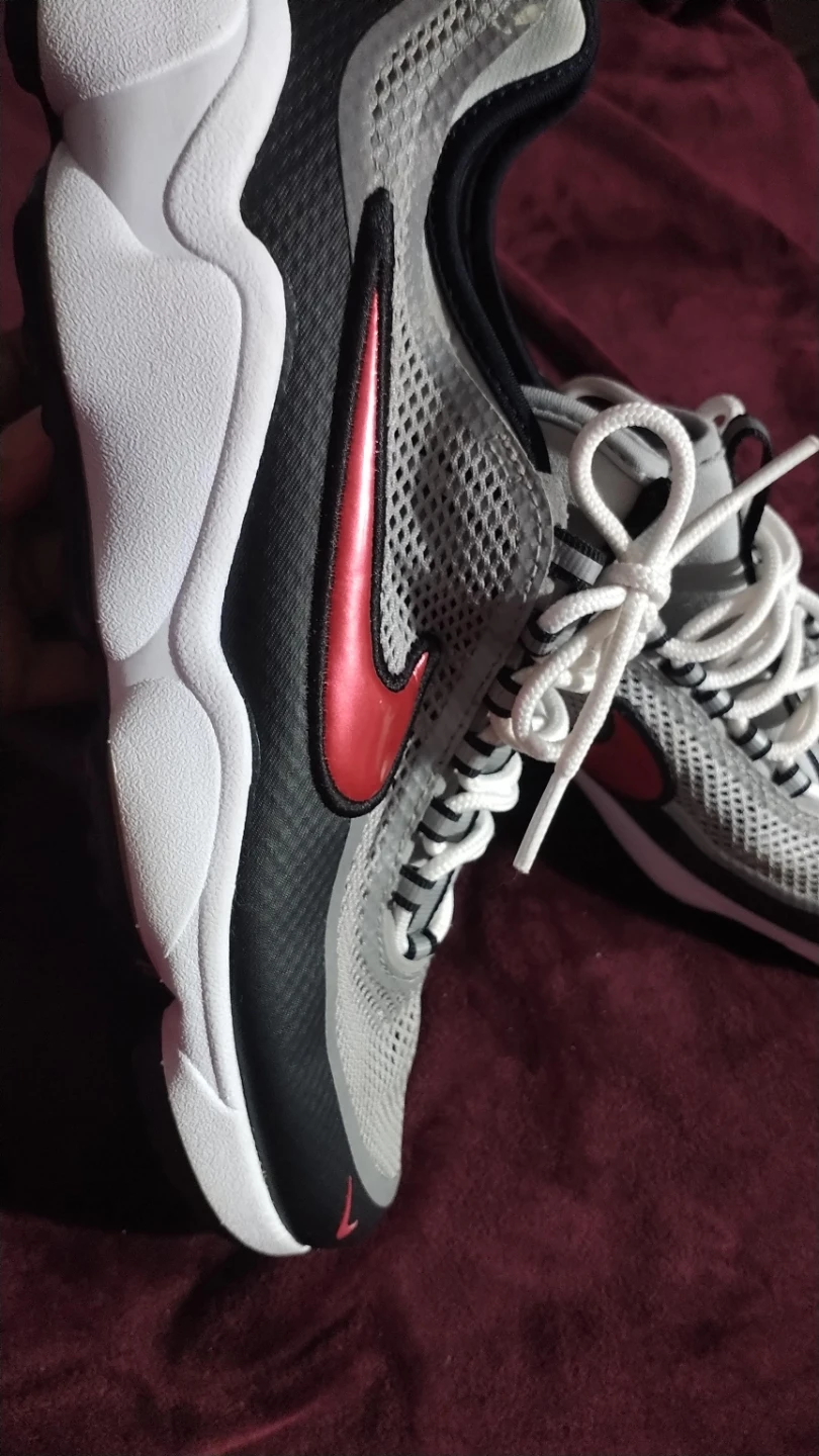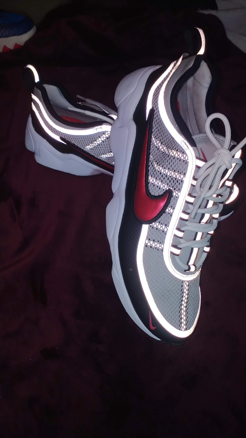 Air Spiridon. 9/10 Condition. Grey, black, and red. Mesh upper with reflective accents. Lace-up closure.