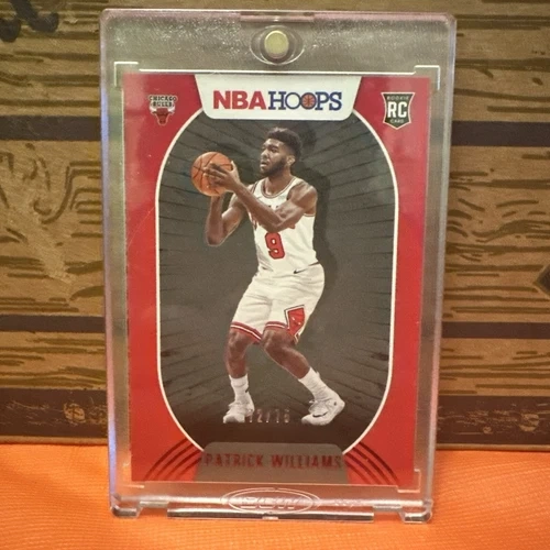 NBA HOOPS Red Parallel RC Rookie Patrick Williams trading card featuring the player from the Chicago Bulls. It is a limited edition card numbered out of 75 and is in mint condition—sleeved and loaded as soon as it was pulled (see photos).