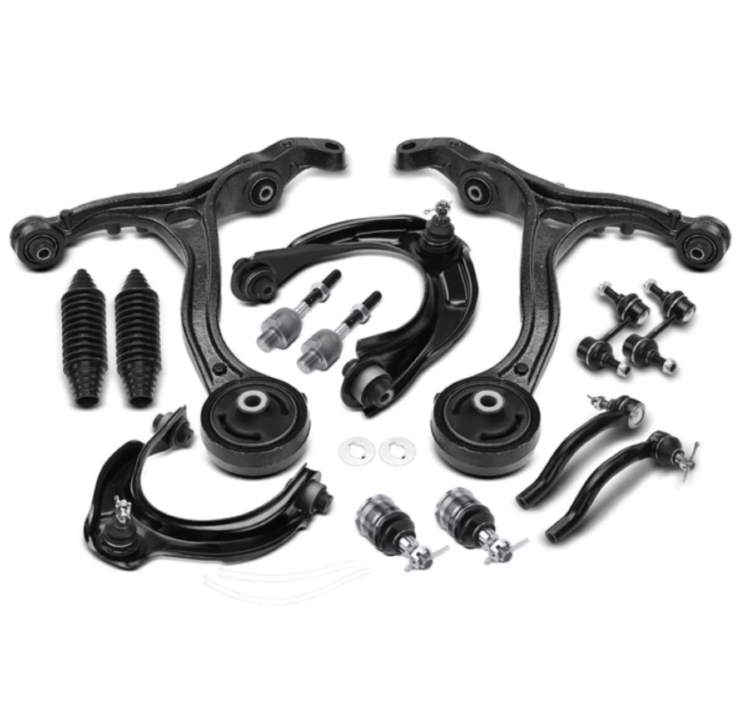 This A-Premium kit includes 14 pieces for the front side of your 2008-2012 Honda Accord. It contains control arms, ball joints, tie rods, and sway bar links. These parts are designed for L4 2.4L and V6 3.5L sedan models.