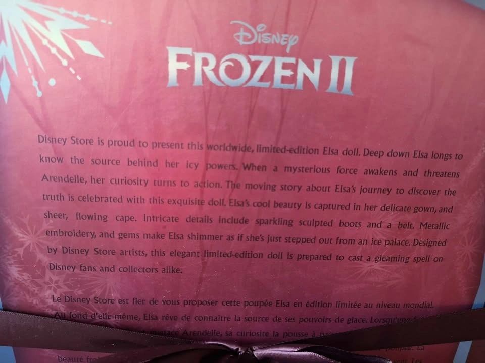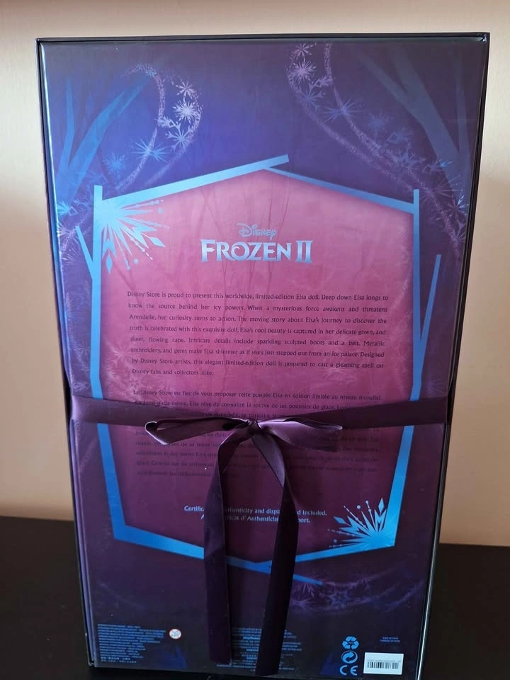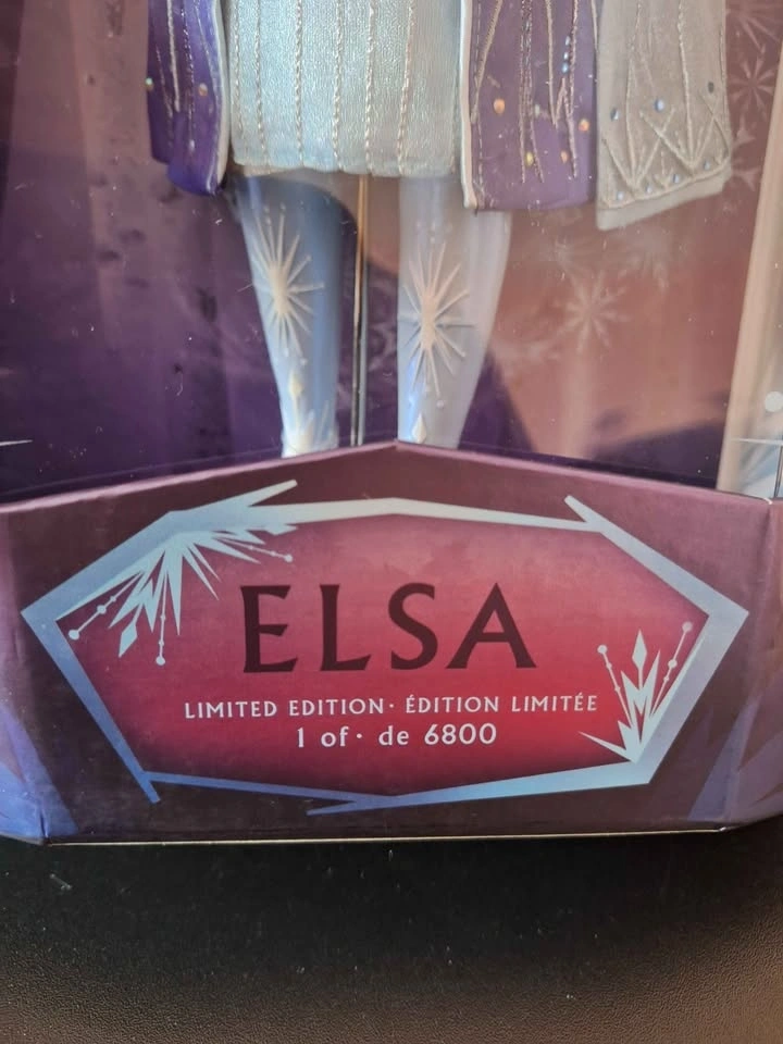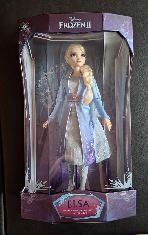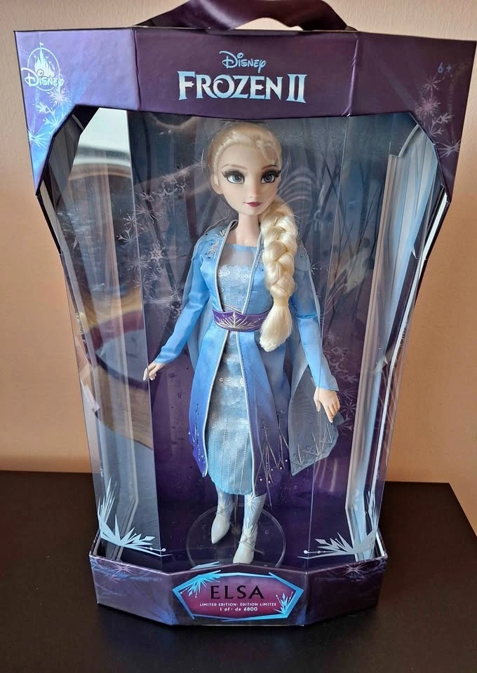 This exclusive Elsa doll from Disney's Frozen 2 is a limited edition collectible, numbered 1 of 6800. Released in 2019, it features a contemporary design and is a must-have for any Disneyana or Frozen enthusiast looking to add a unique piece to their collection.