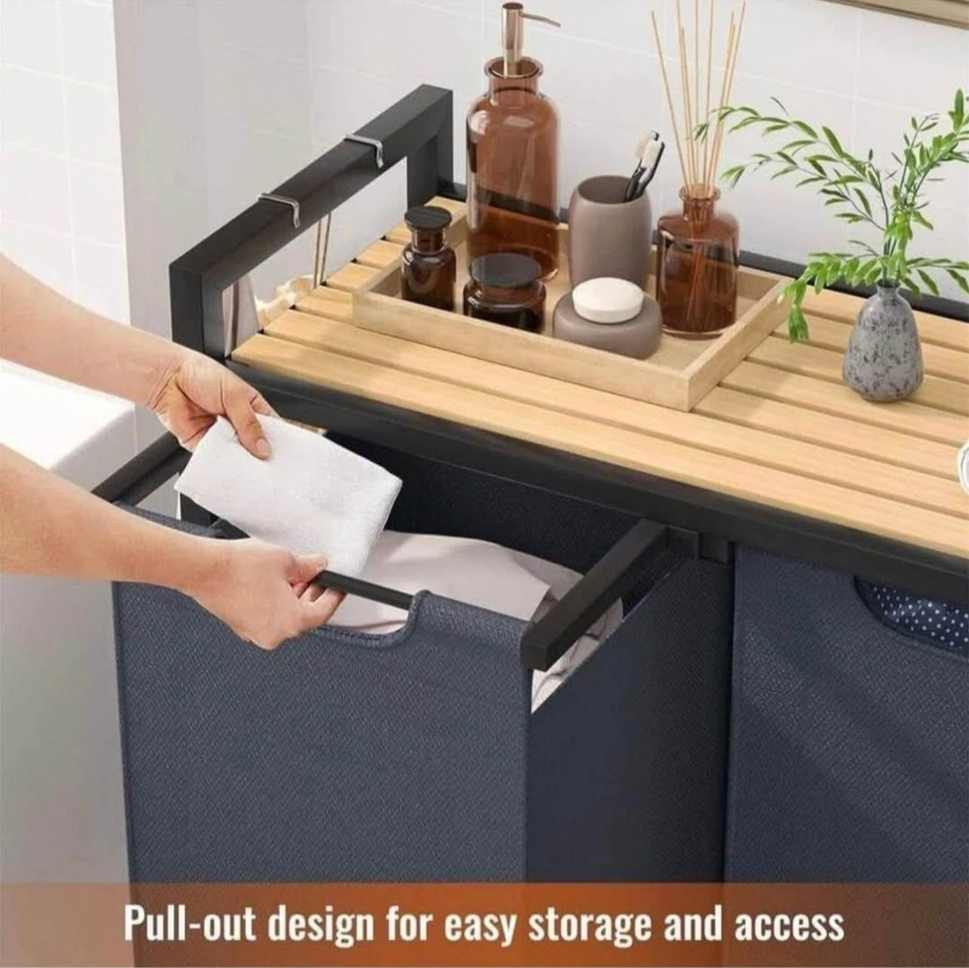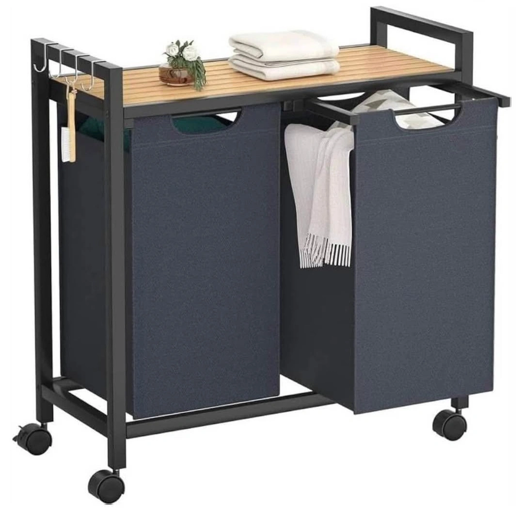 Laundry Hamper Cart with Wooden Top