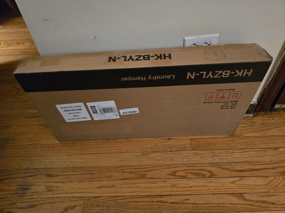 Rolling laundry cart. New in box, nothing wrong with it, we just ended choosing a different style.