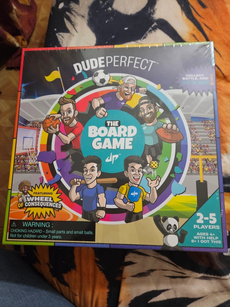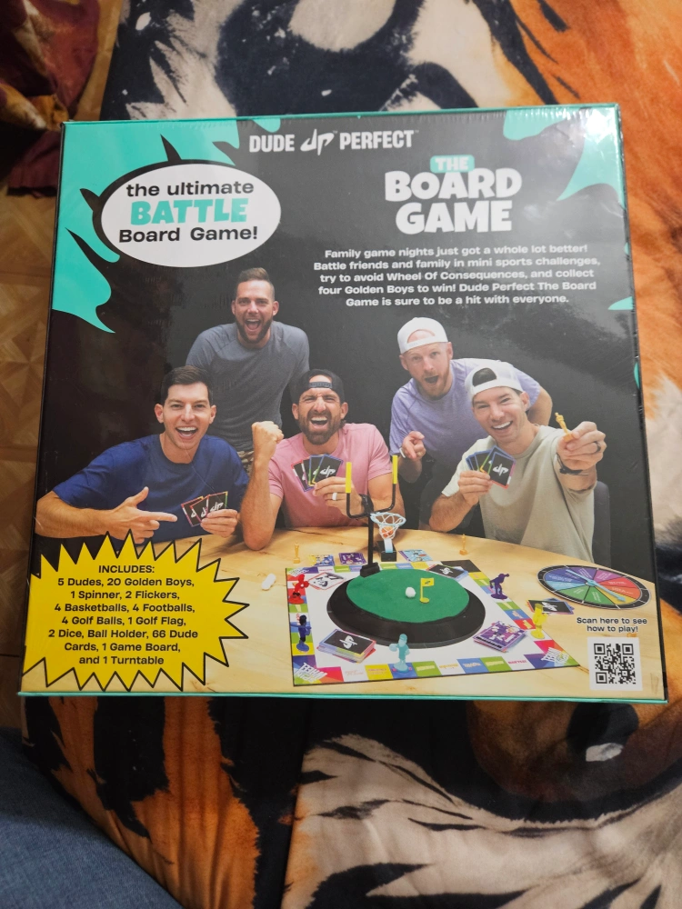 Selling a brand new, still-in-box Dude Perfect The Board Game! It includes everything you need for family game night: 5 Dudes, 20 Golden Boys, 1 Spinner, 2 Flickers, 4 Basketballs, 4 Footballs, 4 Golf Balls, 1 Golf Flag, 2 Dice, Ball Holder, 66 Dude Cards, 1 Game Board, and 1 Turntable! It's for 2-5 players and ages 8+