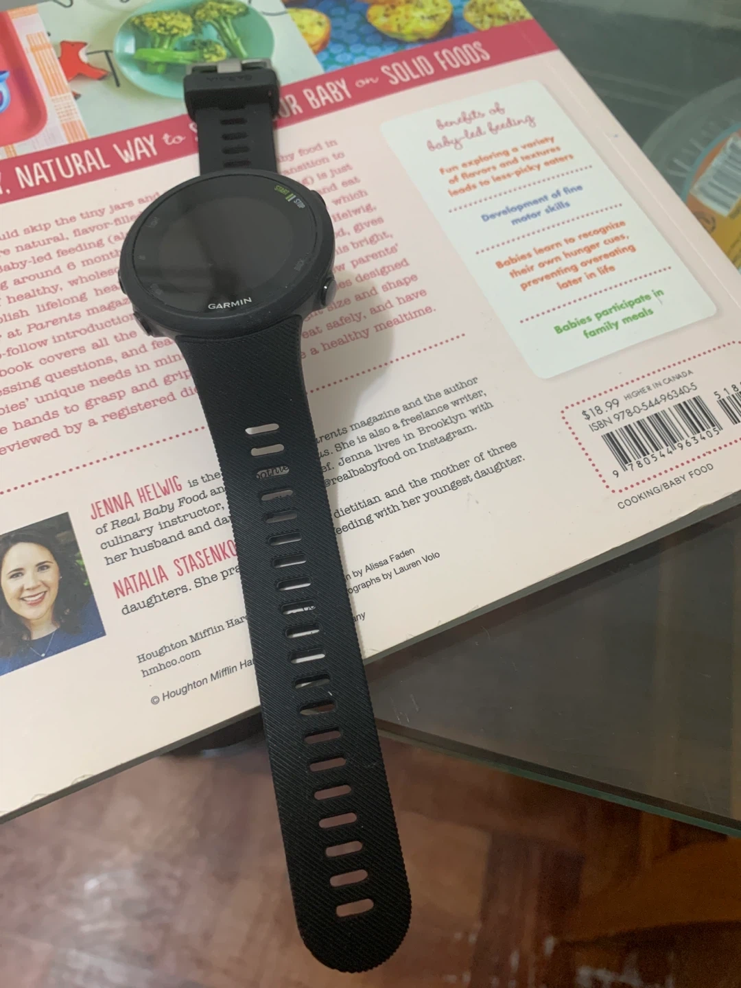 Garmin Forerunner 245 GPS running watch. It's black and features a durable silicone band. Includes GPS tracking for runs and workouts. Perfect for runners looking to track their performance.