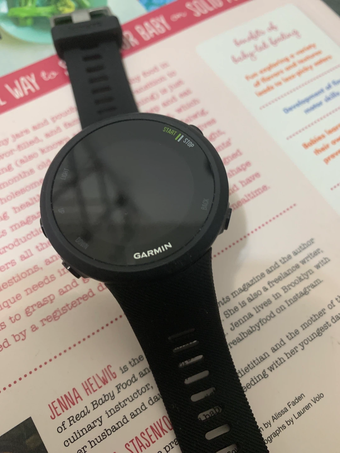 Garmin Forerunner 245 GPS running watch. It's black and features a durable silicone band. Includes GPS tracking for runs and workouts. Perfect for runners looking to track their performance.