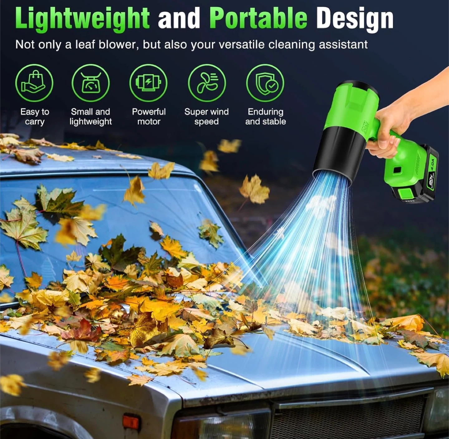 Leaf Blower Cordless, Handheld Leaf Blower with 2 X 4.0Ah Battery and Charger, 6 Speed Modes, Lightweight Blowers for Lawn Care, Patio, Yard, Dust,Blowing Leaves,Snow