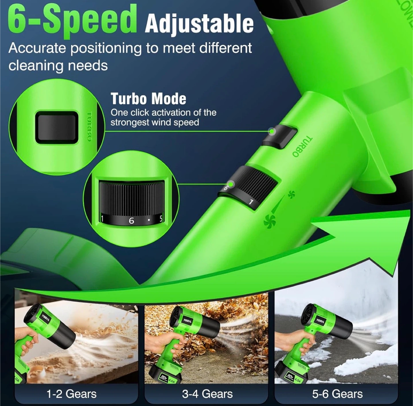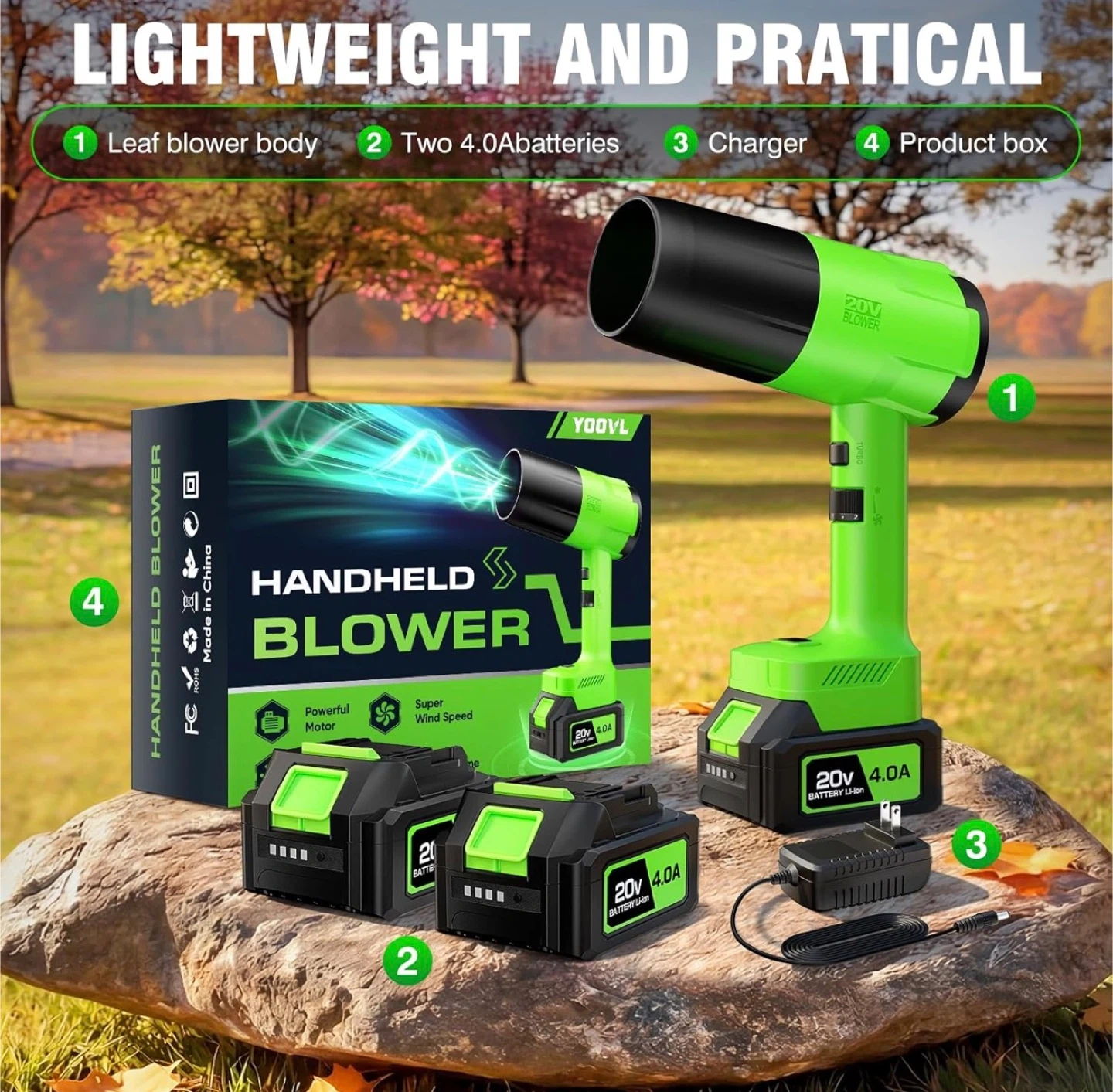 Leaf Blower Cordless, Handheld Leaf Blower with 2 X 4.0Ah Battery and Charger, 6 Speed Modes, Lightweight Blowers for Lawn Care, Patio, Yard, Dust,Blowing Leaves,Snow