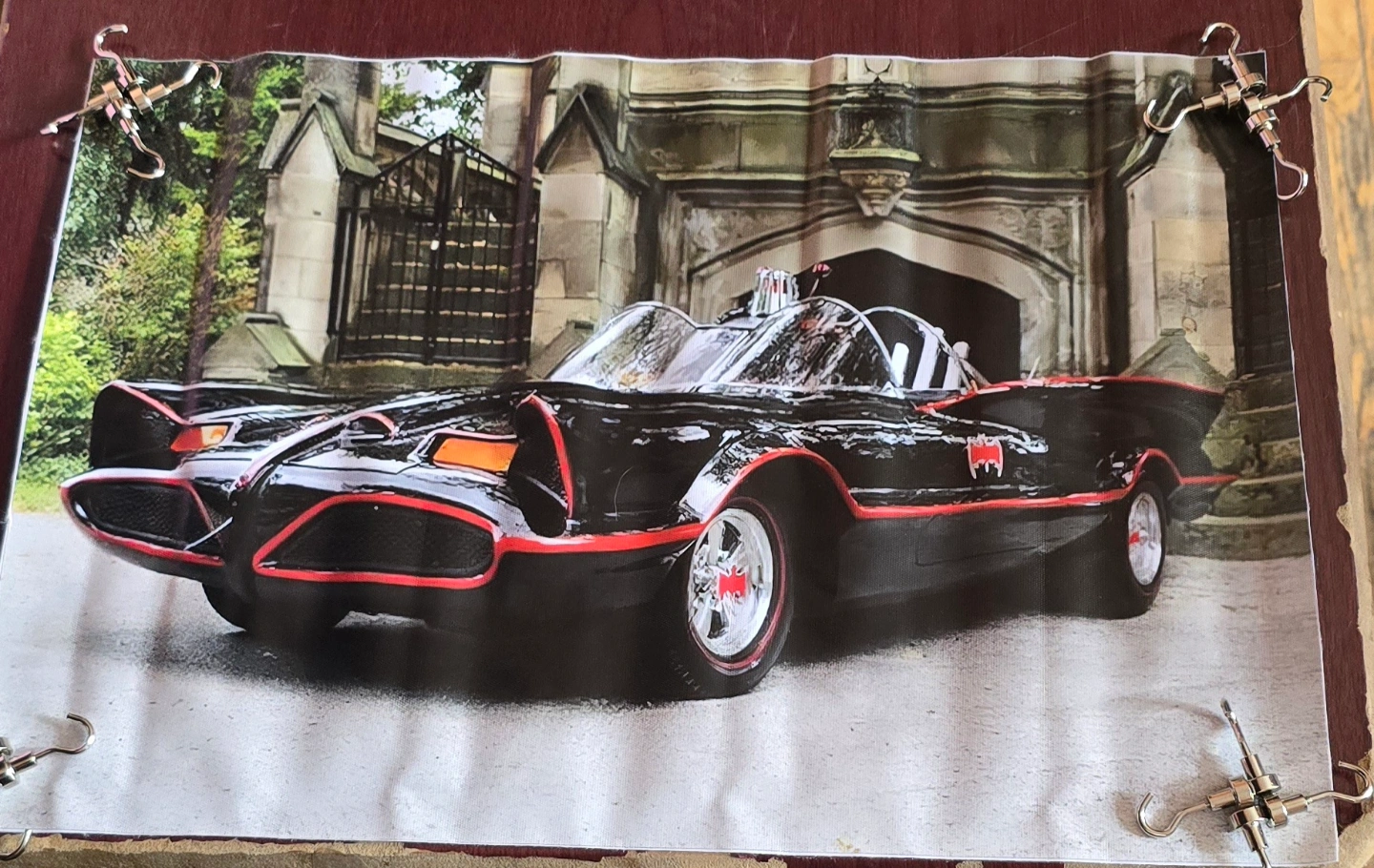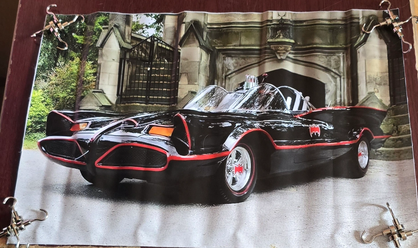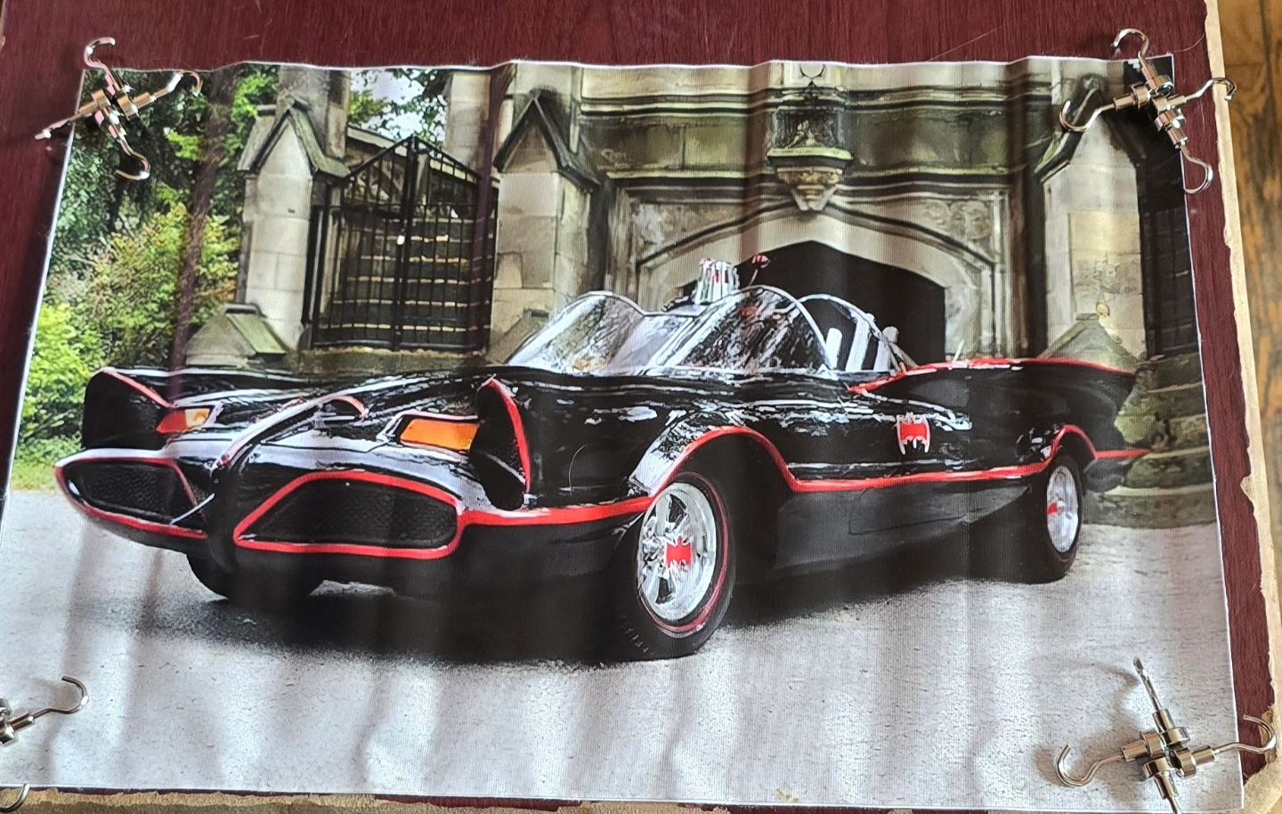 Large poster print of the Batmobile. Features a high-quality image of the iconic car. Perfect for any Batman fan. Excellent condition. Ready to frame. 18x12.