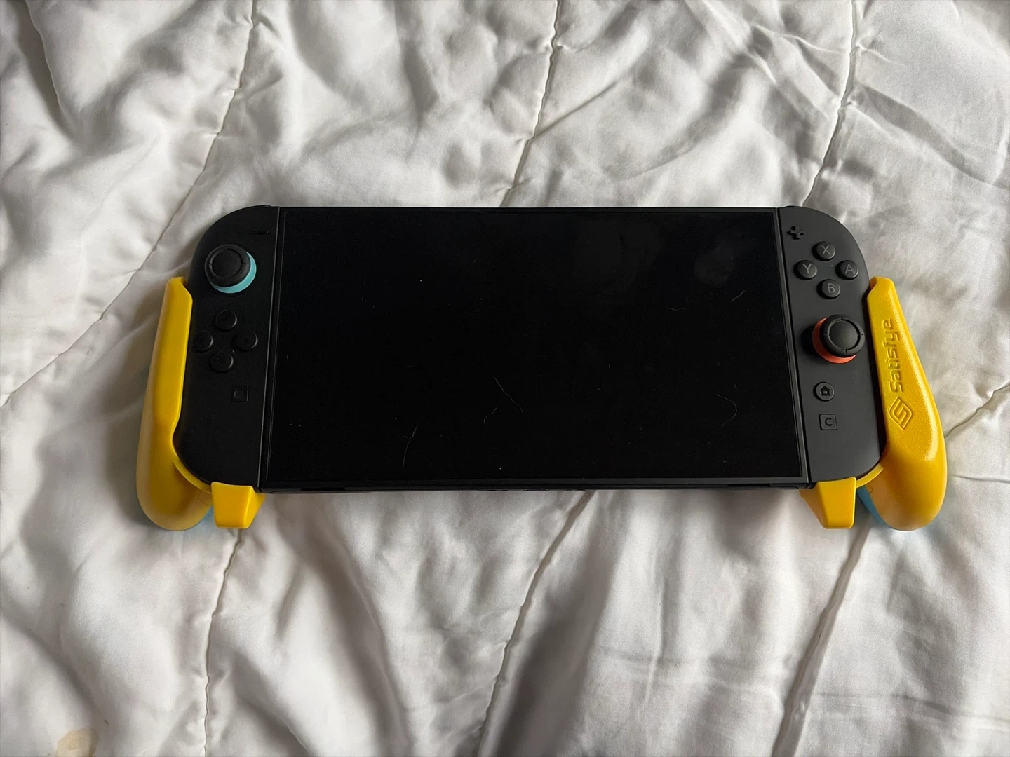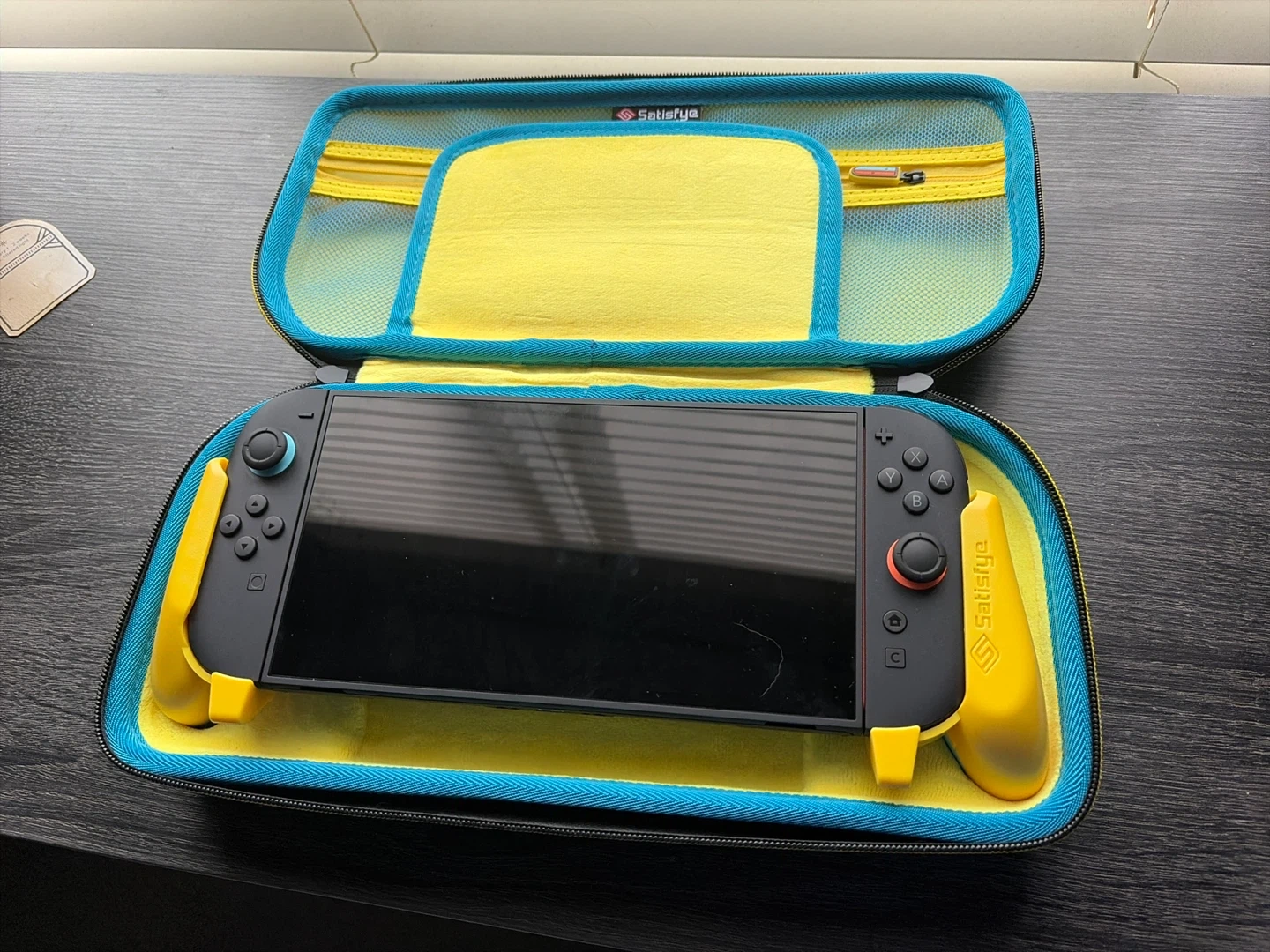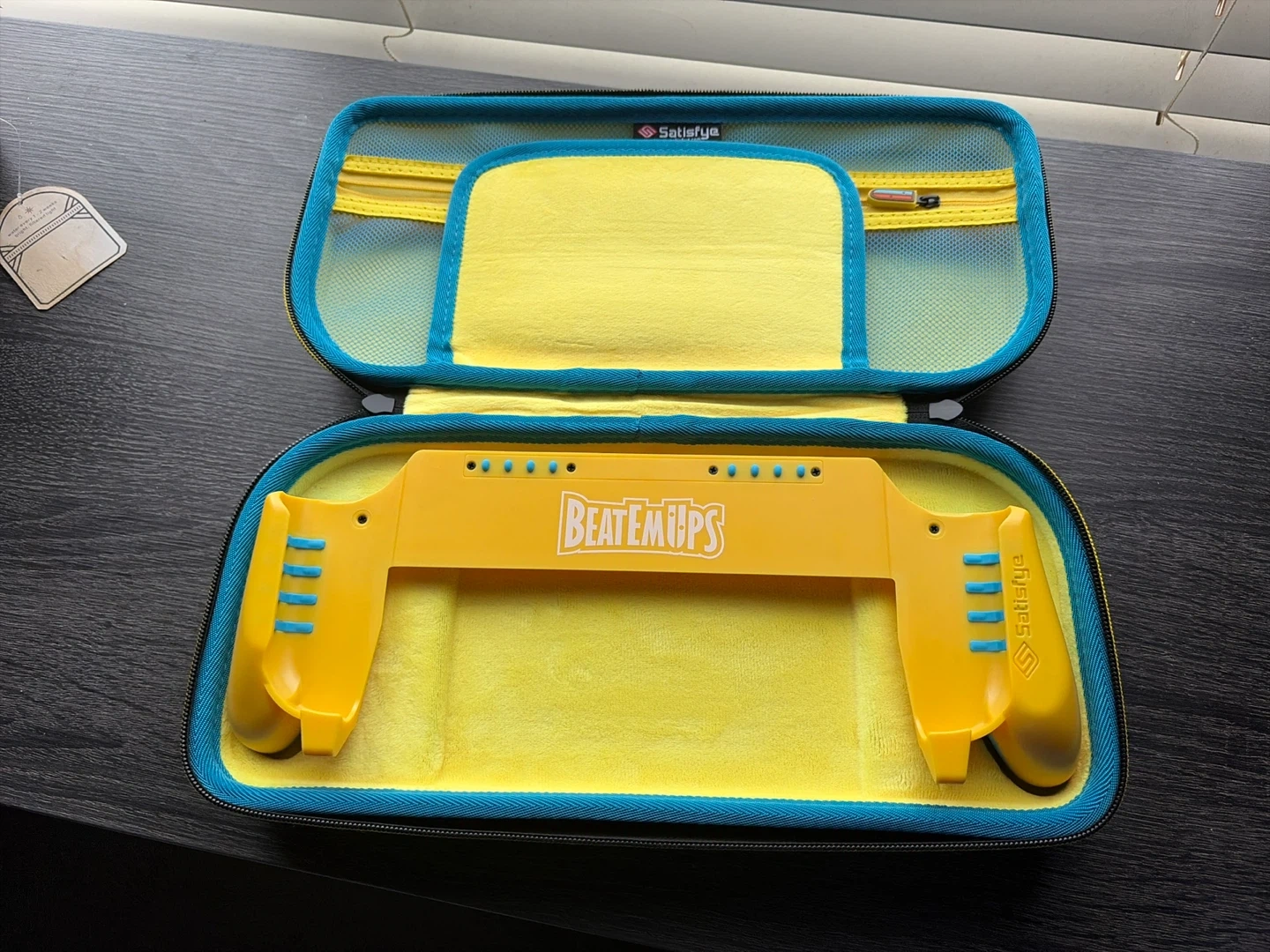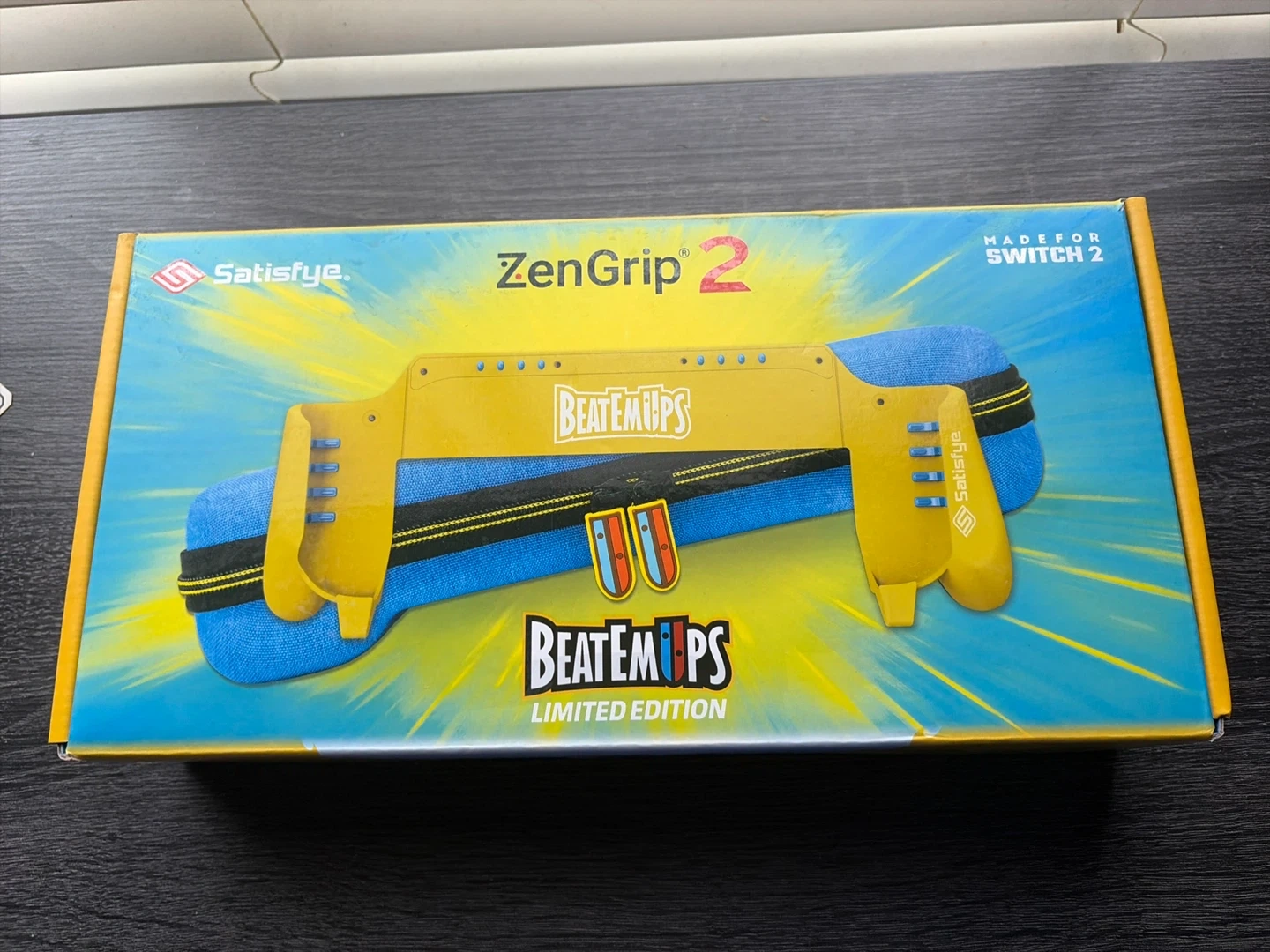 This is the Satisfye ZenGrip 2 Limited Edition for Nintendo Switch, designed in collaboration with YouTuber - BeatEmUps. It features ergonomic grips and comes with a protective carrying case. It's specifically made for the Nintendo Switch 2.