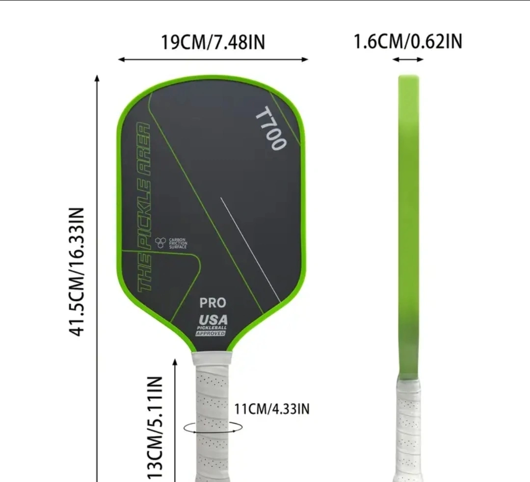 Crafted with premium T700 raw carbon fiber, this paddle is designed for players who demand maximum control without sacrificing explosive power. The high-strength carbon face delivers an ultra-responsive sweet spot and consistent touch on every shot, while the optimized core offers excellent vibration dampening and stability. Whether you're playing close to the kitchen or driving from the baseline, the T700 paddle provides the ideal balance of spin, control, and durability. Lightweight construction ensures quick hand speed and smooth maneuverability, making it perfect for both competitive and advanced recreational players.