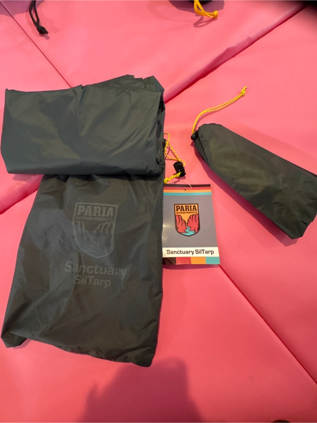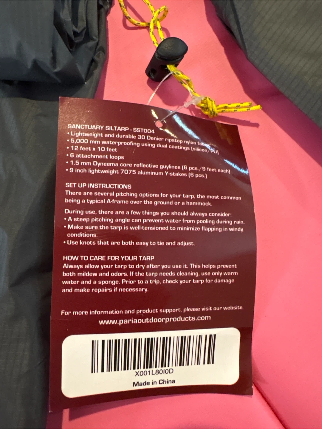 This lightweight and durable tarp is made with dual coatings for 5000 mm waterproofing. It measures 12 feet by 10 feet and includes 6 attachment loops and 9 stakes. This tarp offers versatile pitching options for ground or hammock use.