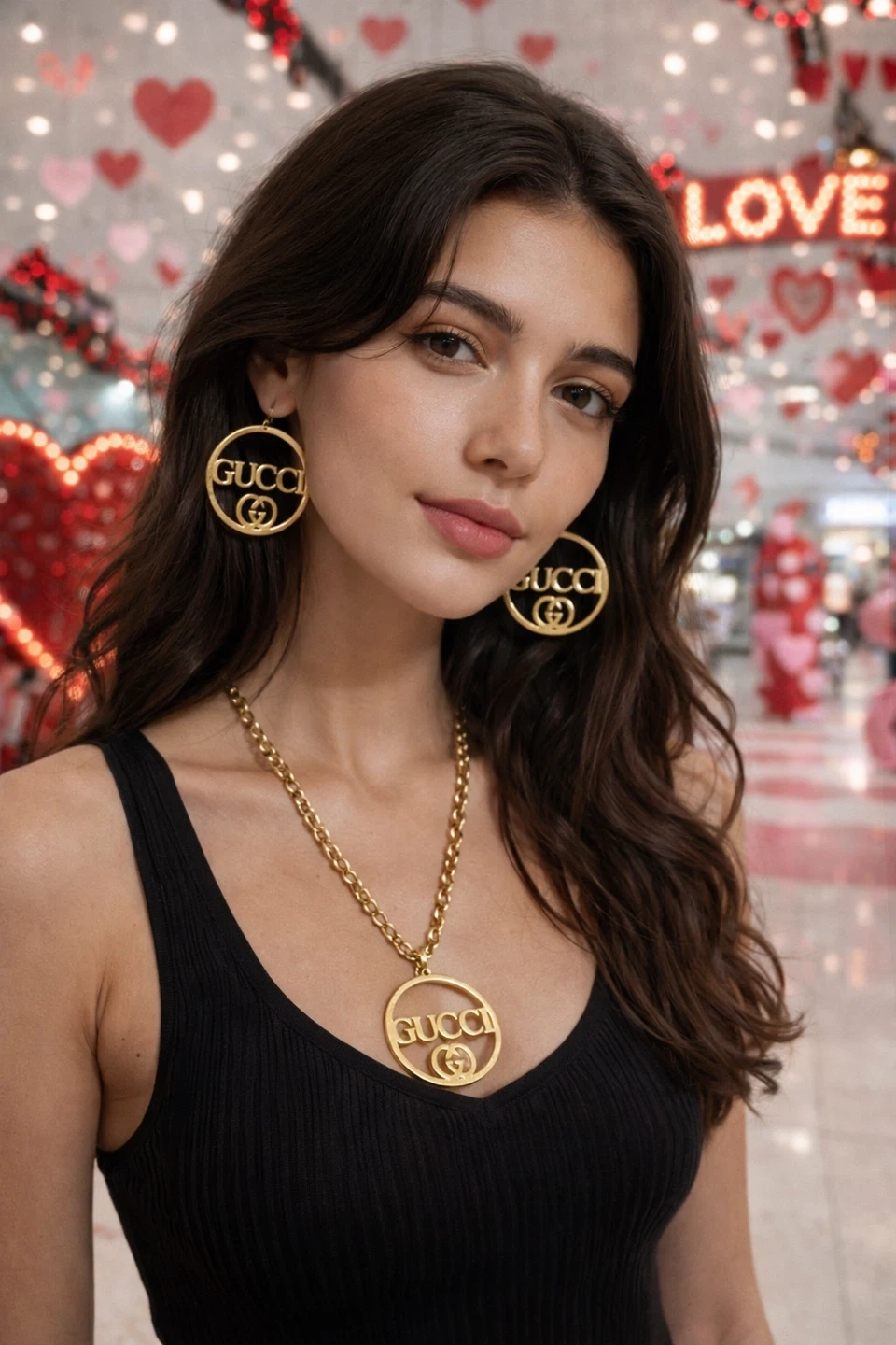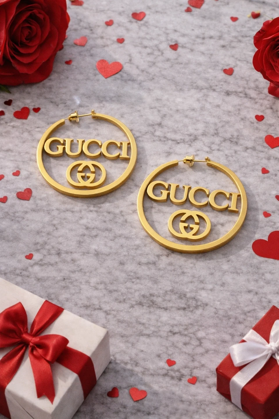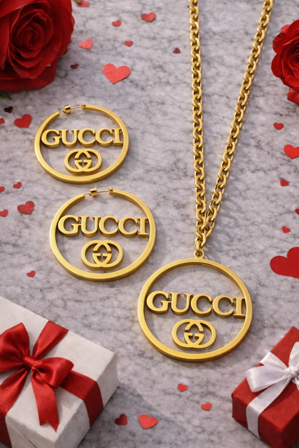 GUCCI Logo Necklace & Hoop Earrings Set