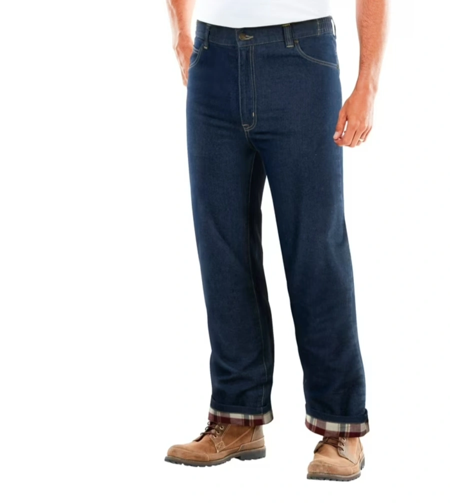 Tried and true jeans that are a must-have for chilly days. The Liberty Blues Flannel Lined Side-Elastic Jeans have a loose fit for a complete range of movement and are lined with our signature plaid flannel for extra insulation all winter long. Relaxed fit Two front pockets, two back pockets, and a coin pocket Side elastic waistband insets Plaid flannel lining 10-oz. cotton denim machine wash.