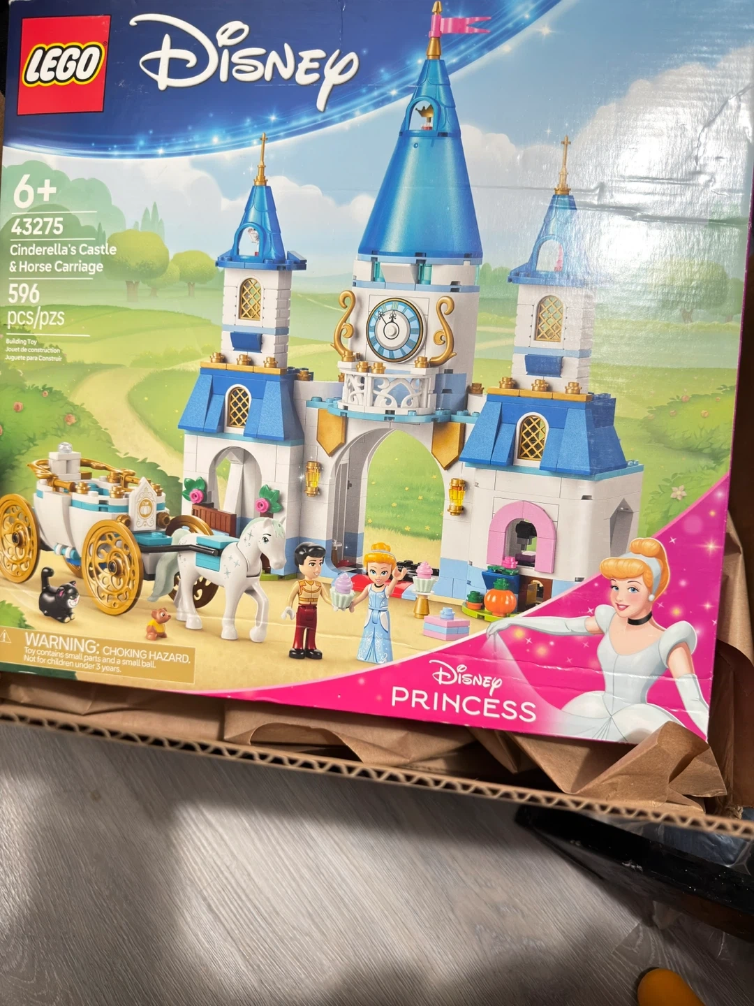 Build Cinderella's Castle and Horse Carriage with this 596-piece LEGO set. It includes characters and accessories for magical play. Recommended for ages 6 and up.