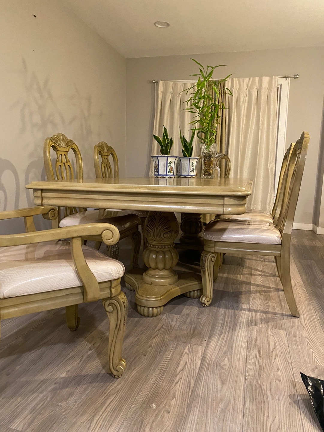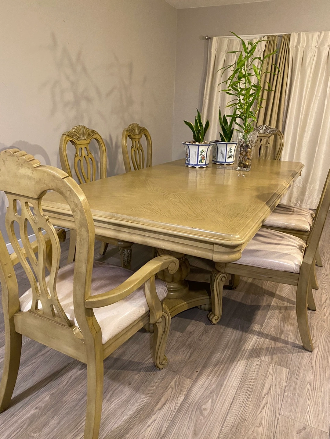 Set of 5 Wooden Dining Chairs and TABLEwith Woven Seats