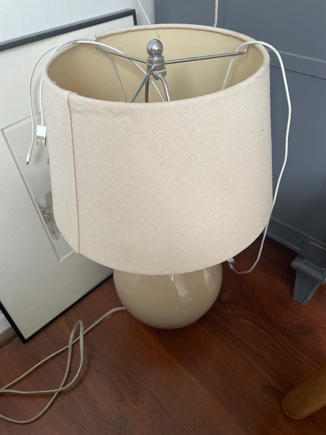 Selling a table lamp with a beige shade. It's in good condition and would look great in any room!