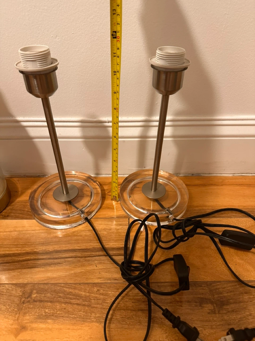 stylish table lamps! One is gold 15” with a clear glass body USB port and the other two are 12” silver with clear acrylic bases. They're in great shape and ready to brighten up your space.