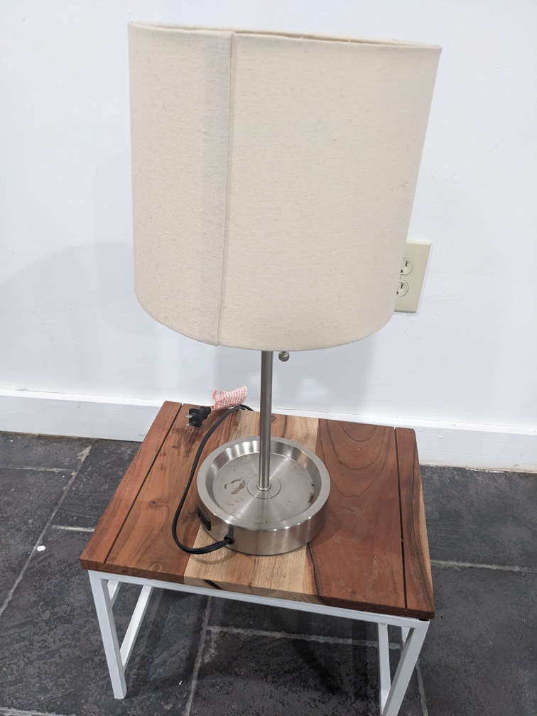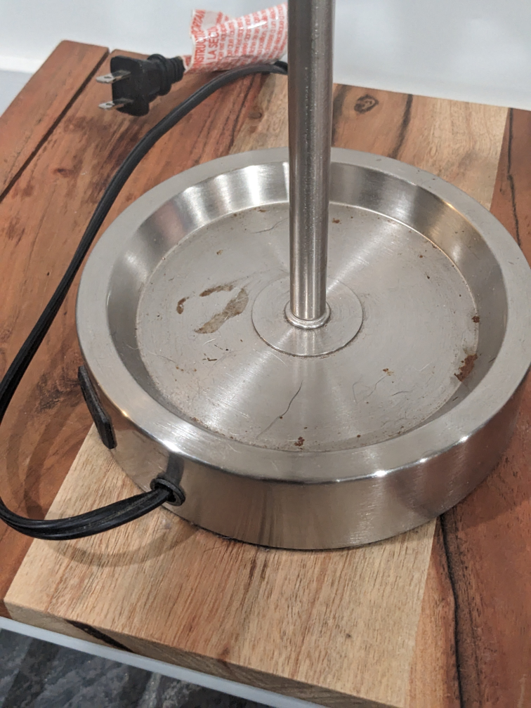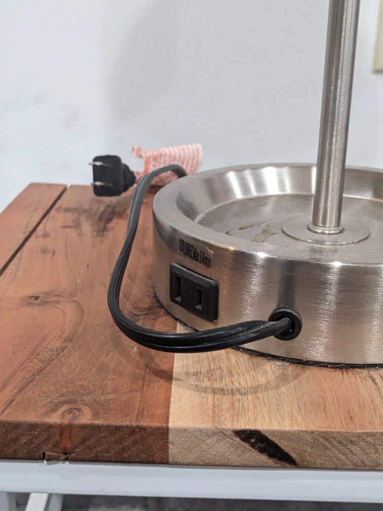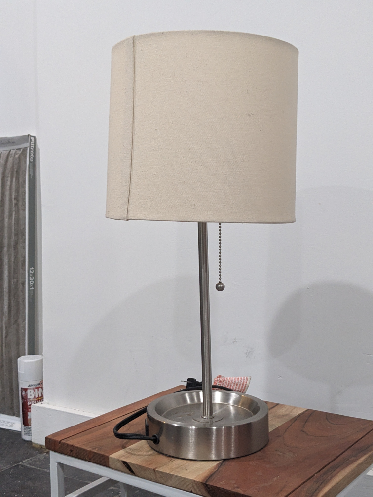 6119" high, has an outlet on the side, nice cream-colored canvas lamp shade