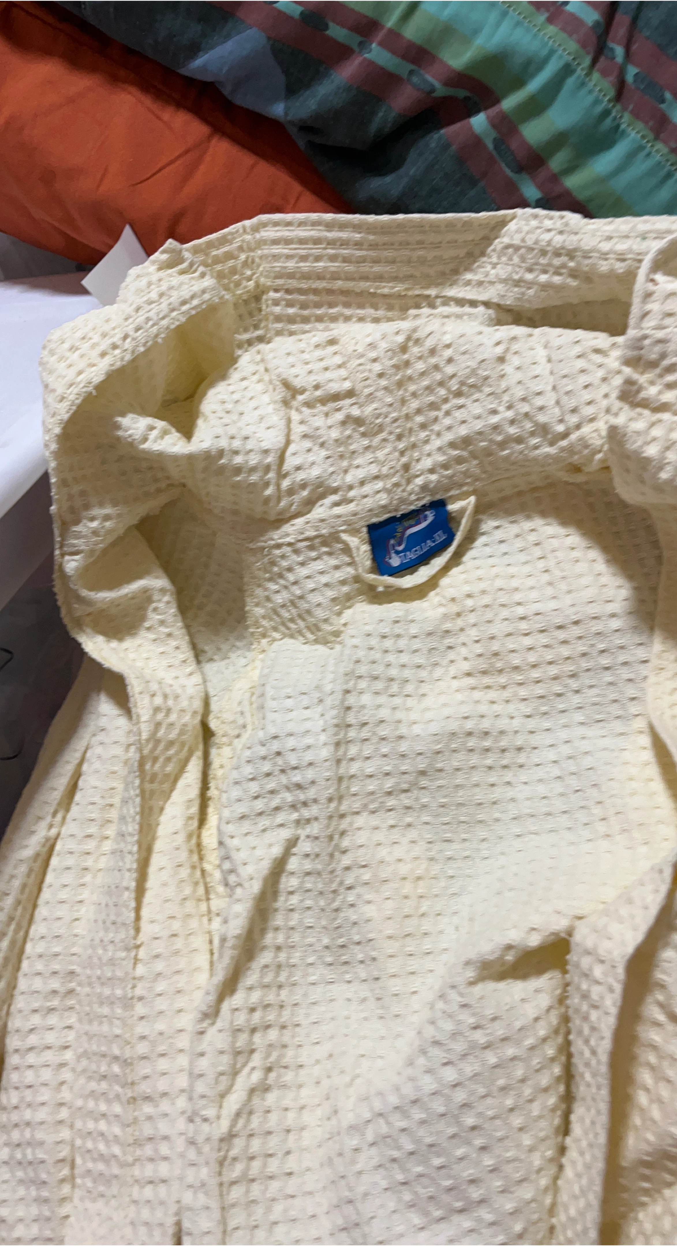 60Here's a Taglia-XL robe in a cream color. It has a waffle texture. It's in good condition and ready for a new home!
