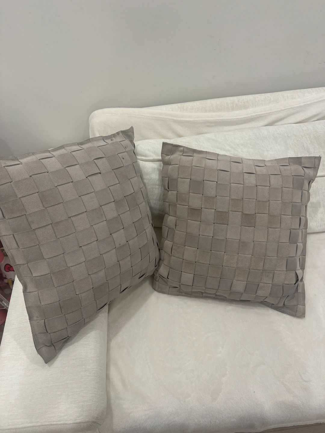 Selling two gray woven 100% suede throw pillows. They are in great condition and would look great on any couch or bed!
