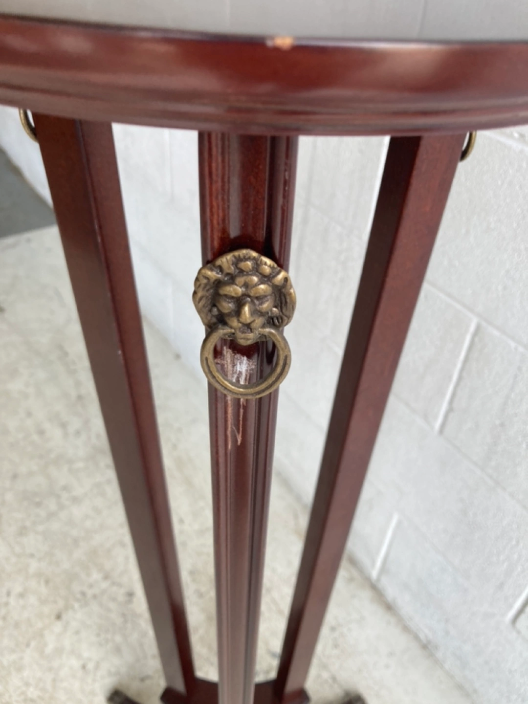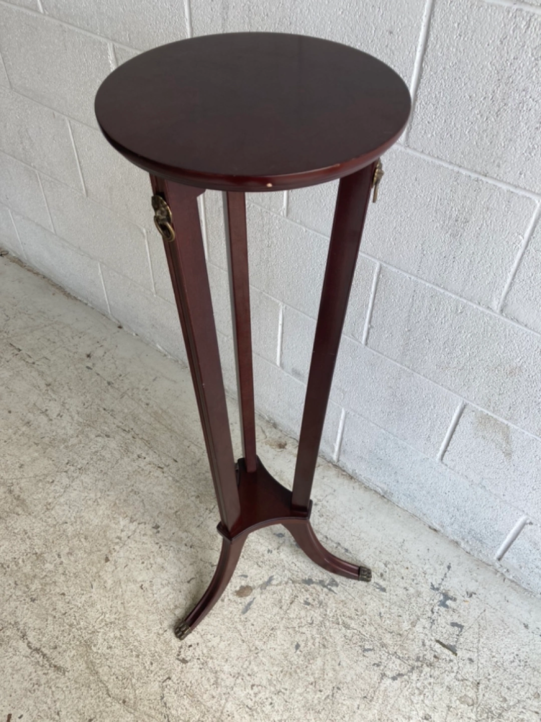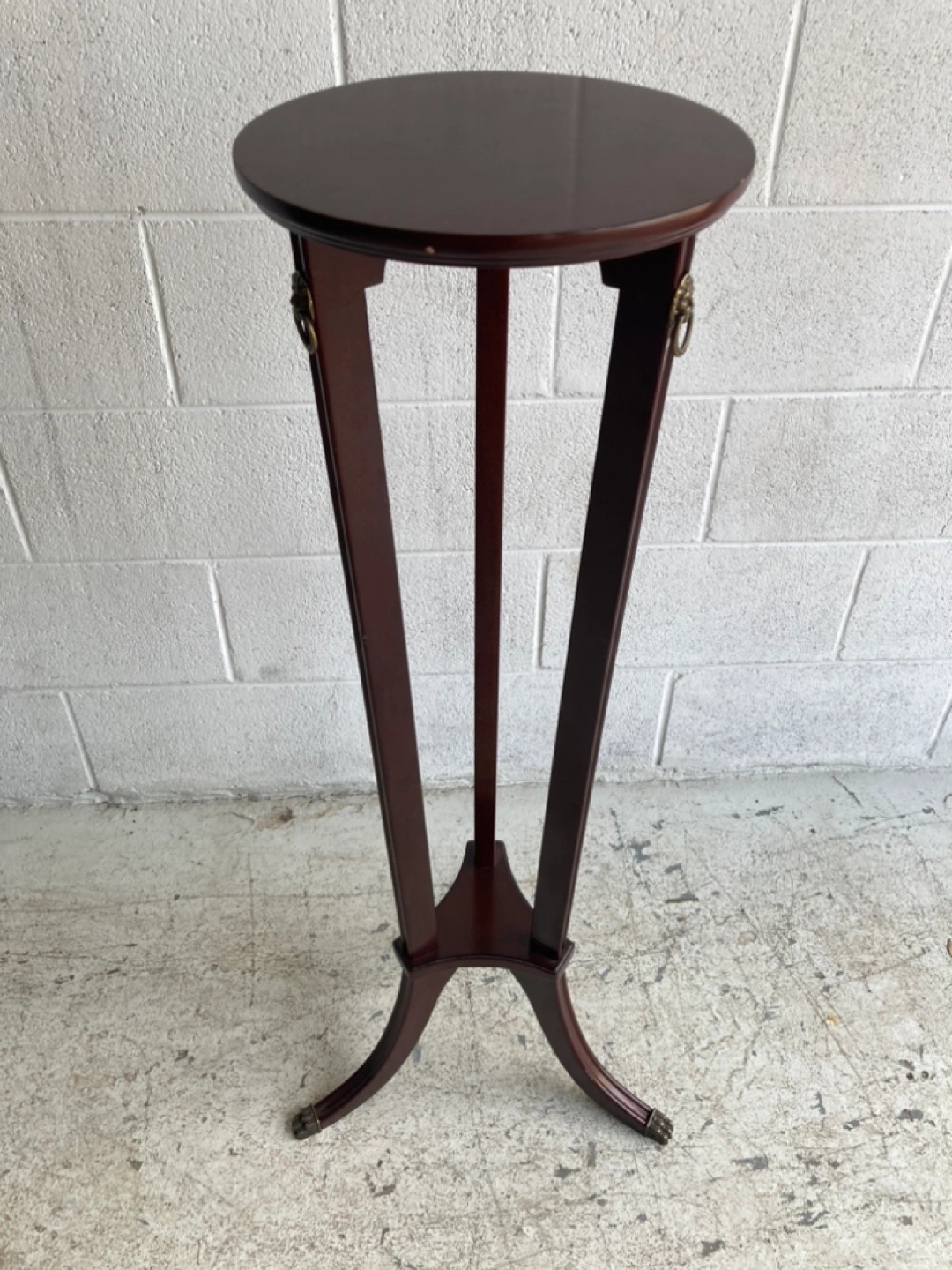 15Tall Bombay and Company end table/plant stand with Lionhead and brass cloth feet. Great condition. The whole table measures 11 1/2 inches in diameter by 40 1/2 inches