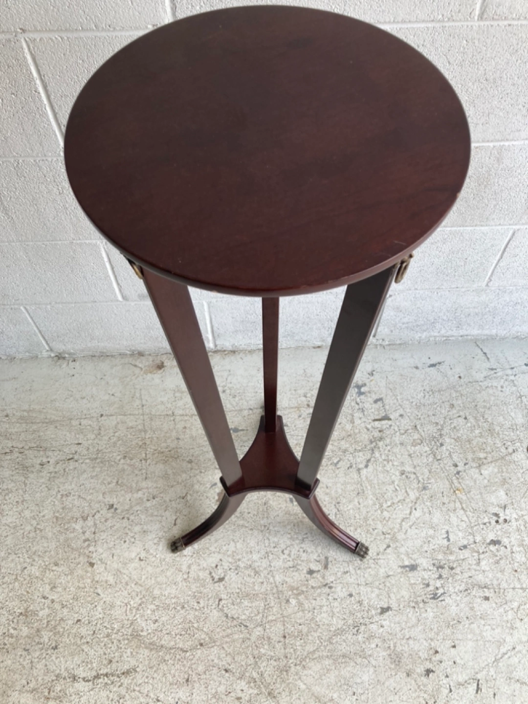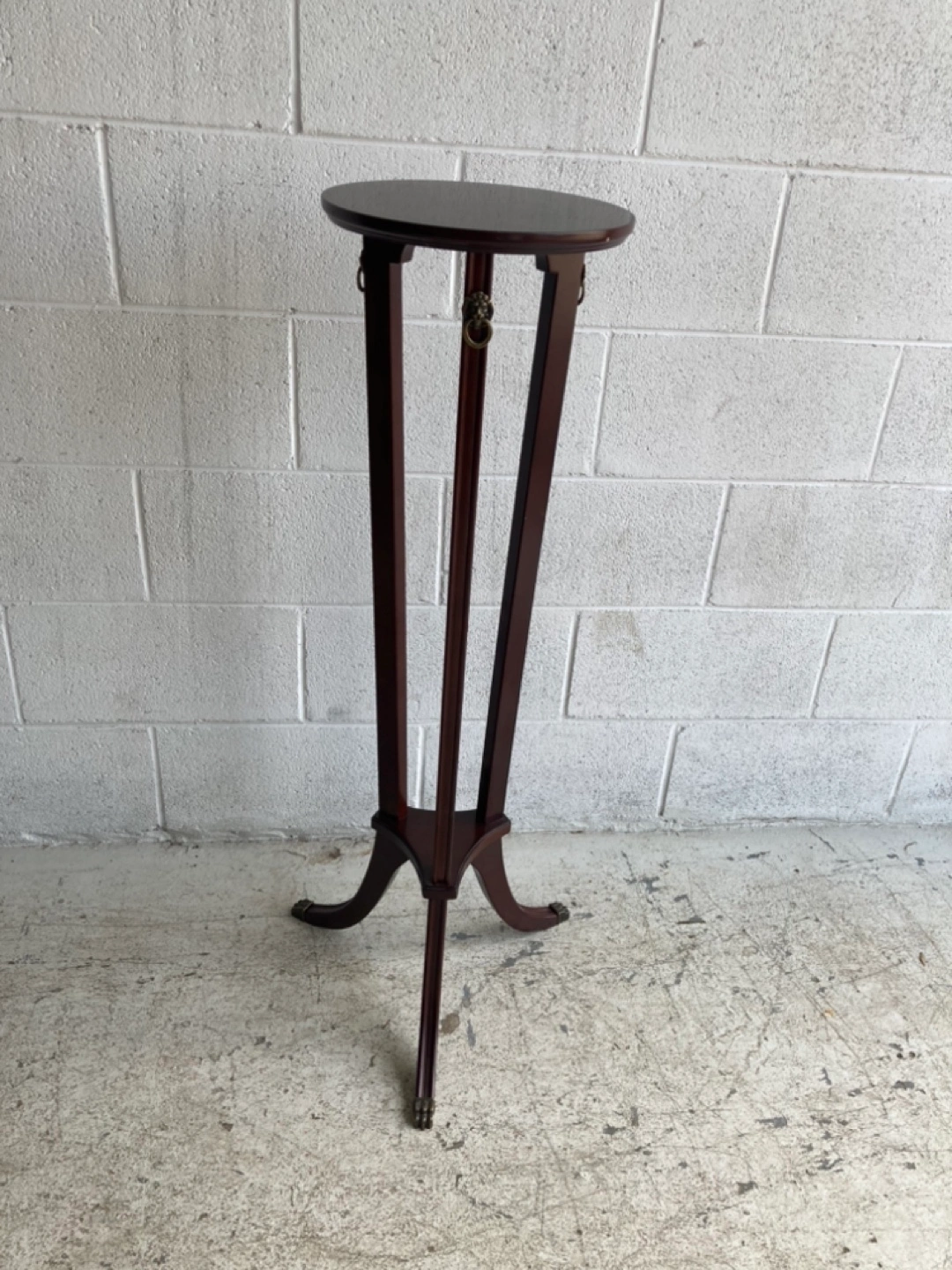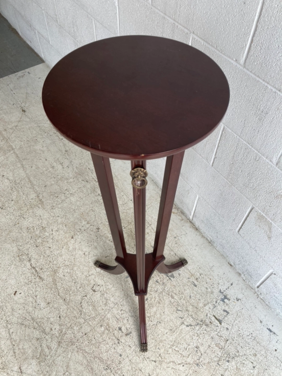 15Tall Bombay and Company end table/plant stand with Lionhead and brass cloth feet. Great condition. The whole table measures 11 1/2 inches in diameter by 40 1/2 inches