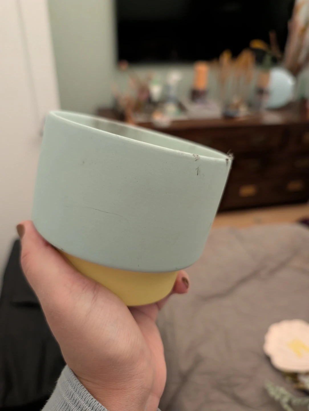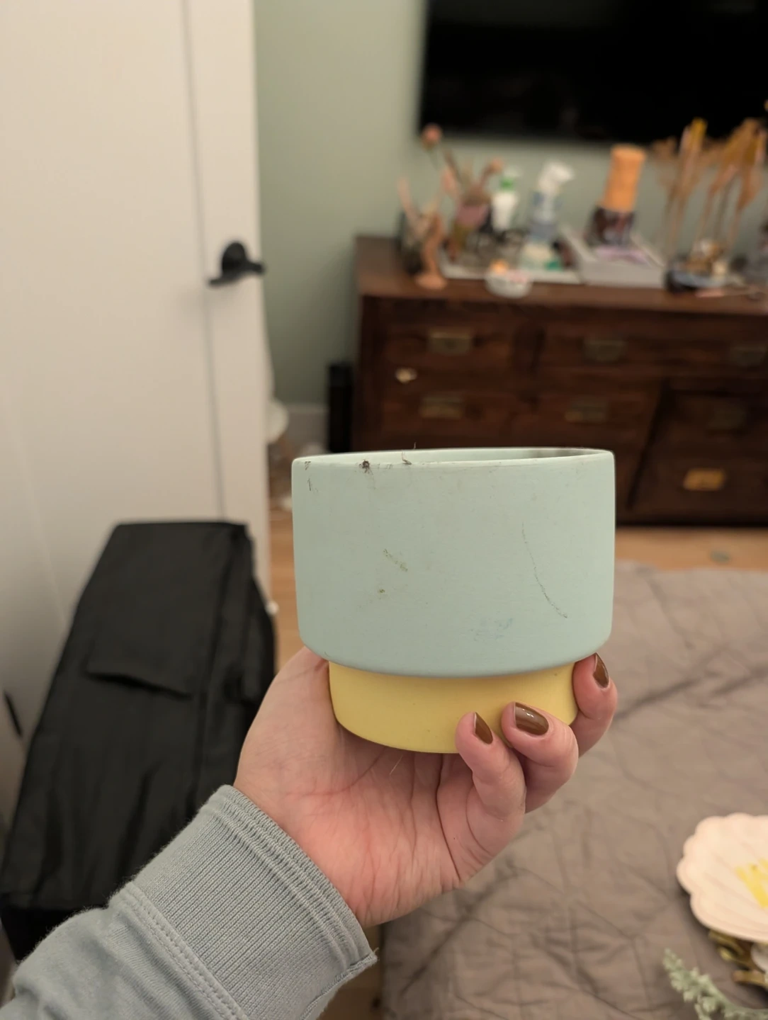 This is a 16oz Paddywax candle in a light blue and yellow ceramic container. The candle is labeled as 'Minty Verde Color BI' and has a price tag of $30.