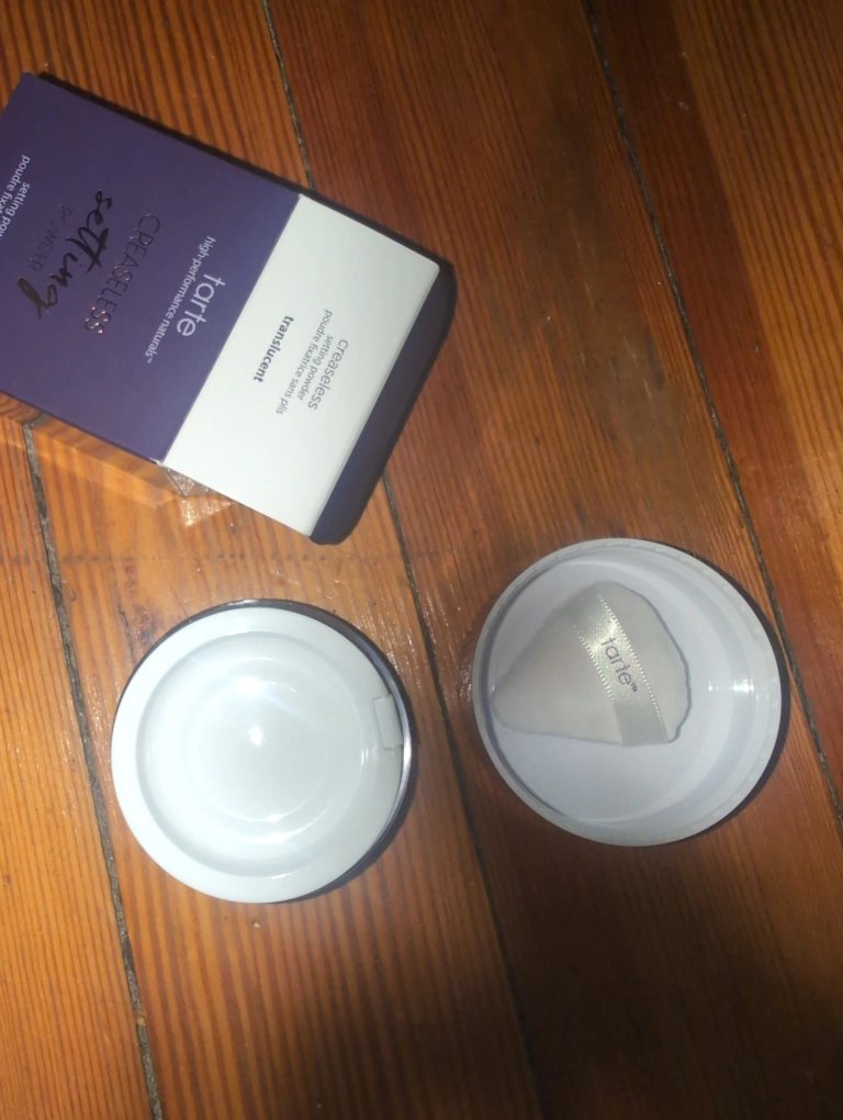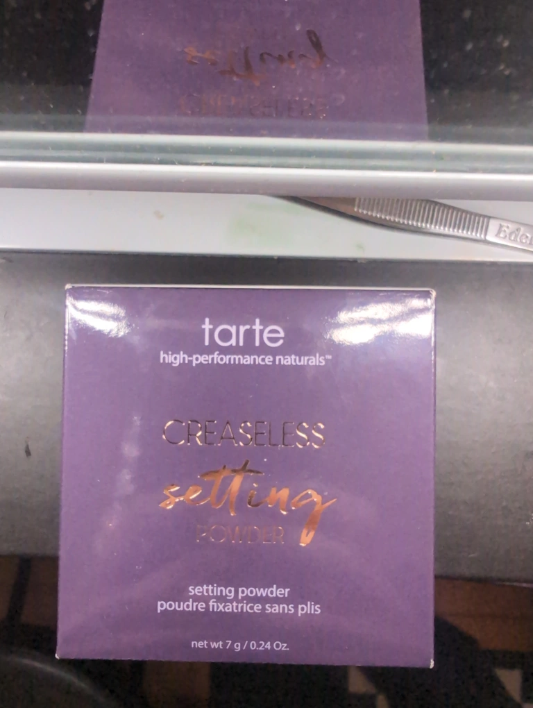 Selling a Tarte Creaseless Setting Powder in translucent! It's ideal for fair to tan-deep skin tones. This setting powder sets makeup for up to 16 hours and is sweatproof. It also smooths the look of undereyes, pores and fine lines for a soft-focus finish. Includes mess-free sifter and mini angled detailing puff. Net wt 7 g / 0.24 Oz