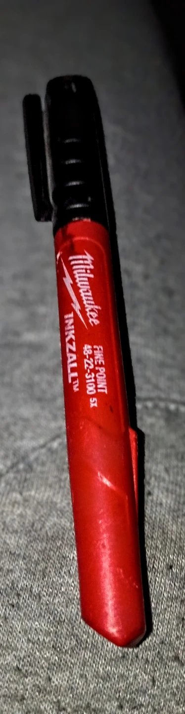 Milwaukee INKZALL fine point marker in red. It's designed for marking on various surfaces. Durable construction for job site use!