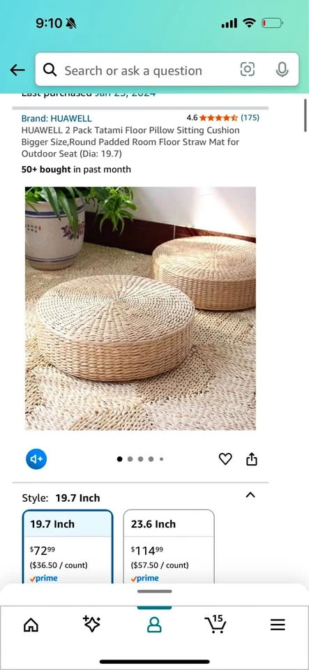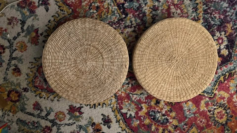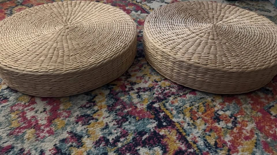 2 Pack Bigger size seat cushion, Our Dia up to : 19.7 inch( 50CM) 250-pound adult has no problem sitting on it. Handcrafted seat mat from eco-friendly sustainable harvested straw,a seasonal natural fiber, traw-woven material good permeability ,ideal for your living room,summer and outdoor activities.pure natural and pollution-free and decorative pillow. High quality with 90 days no question warranty. Superior comfort for a chair,vanity table,footstool,floor mat,dining chairs,balcony cushion,sofa,patio cushion,stadium seat cushion,yoga cushion or any other places to sit. Sells for $73 - used once Great for extra comfortable seating in a small space