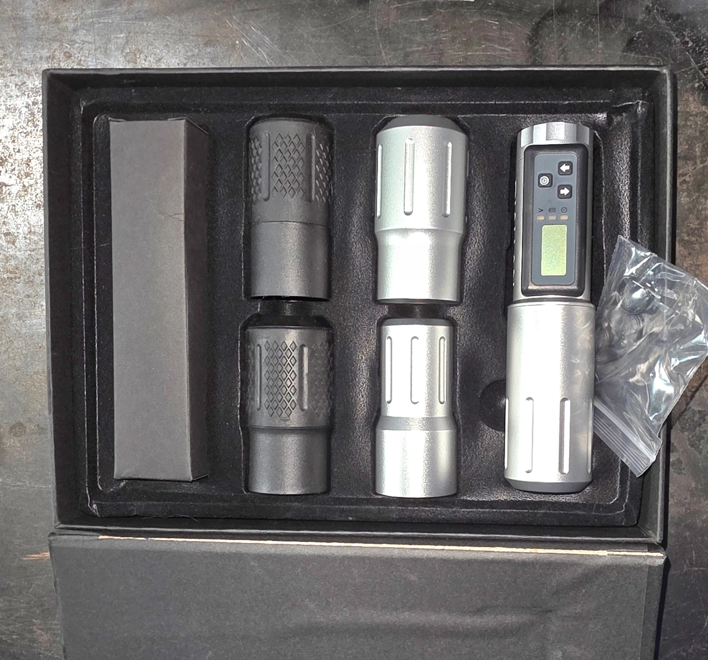 60Selling a tattoo machine kit that includes both silver and black machines. It comes with the box and additional components as pictured. Great for artists looking for reliable equipment!