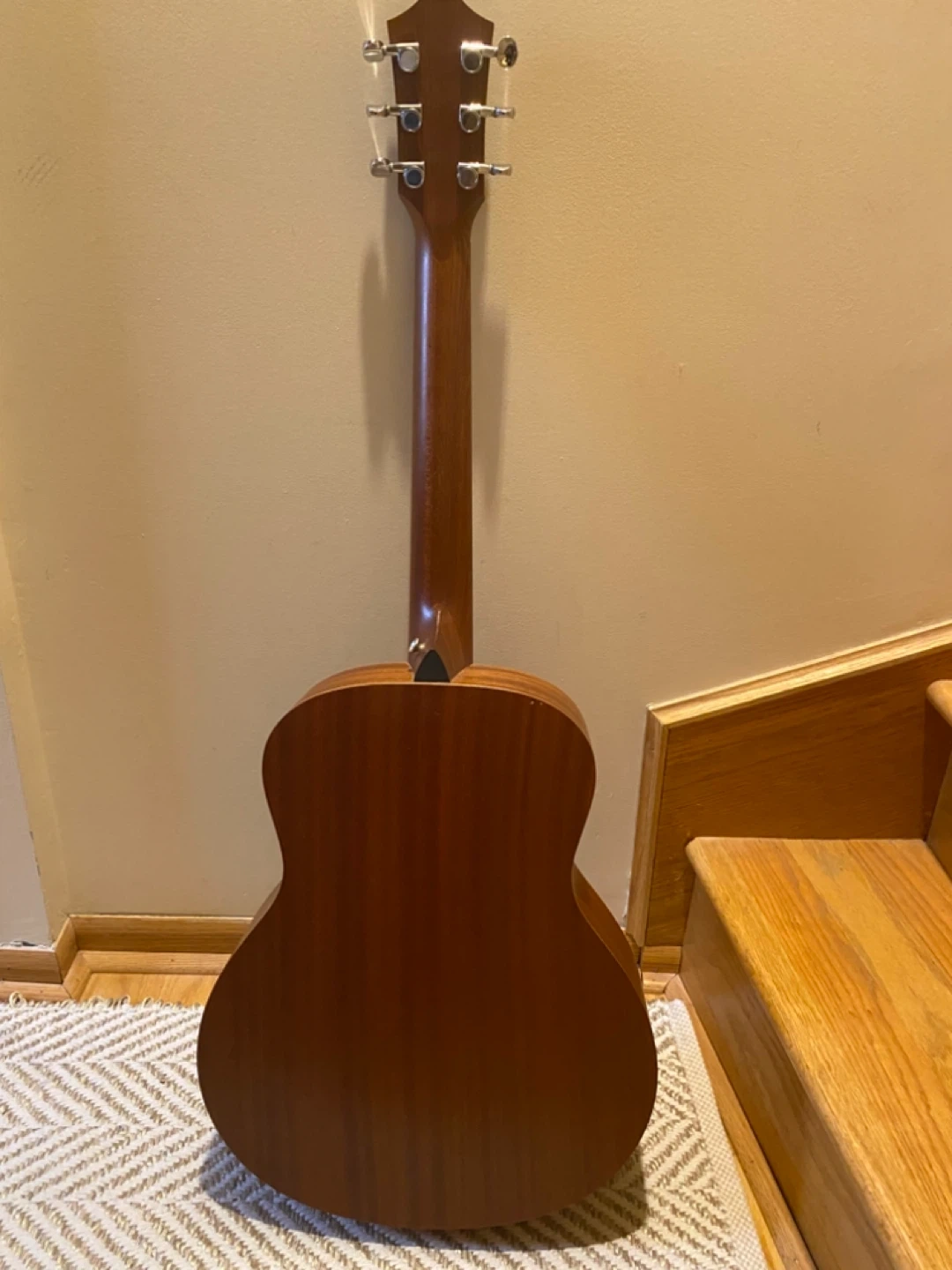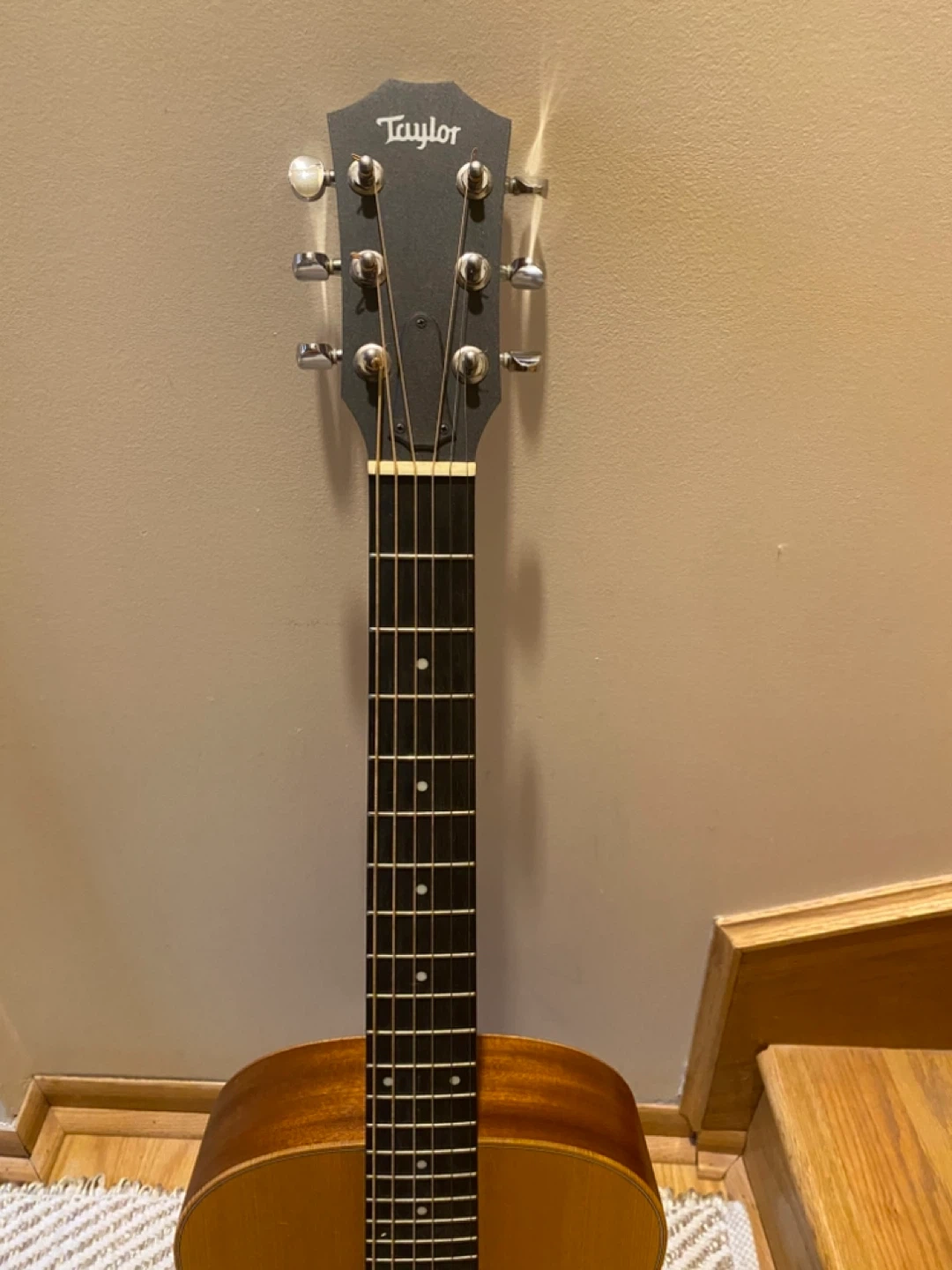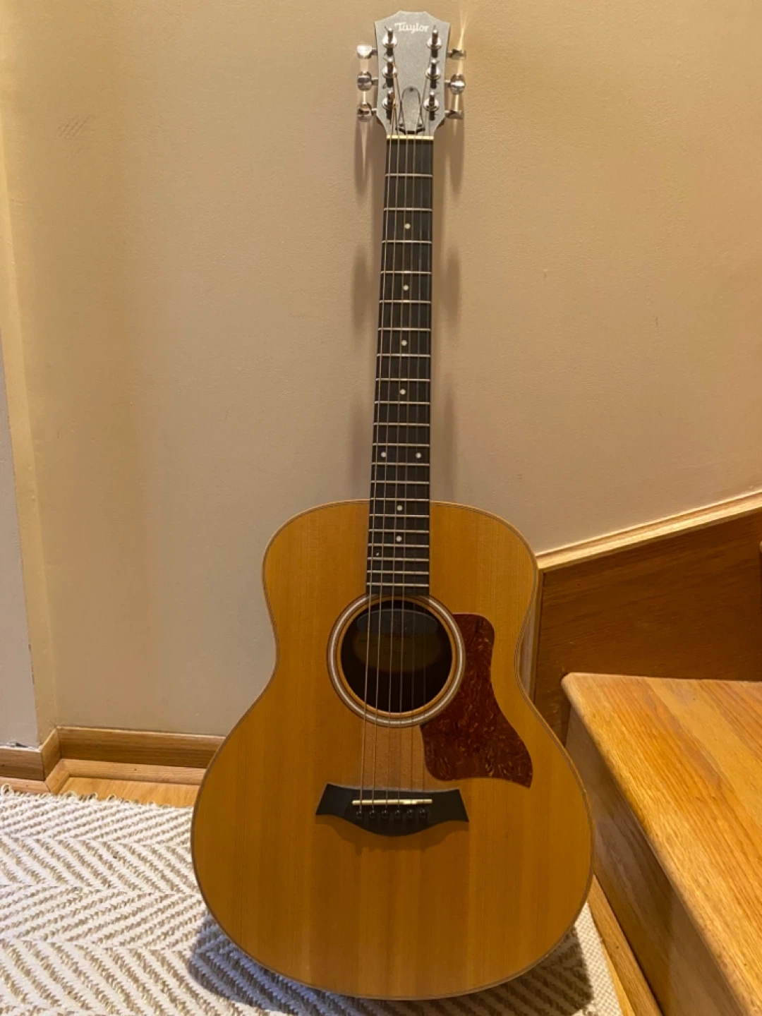 Selling a Taylor GS Mini acoustic guitar. It's in great condition and has a beautiful, warm tone. This guitar is known for its portability and playability, making it perfect for beginners or experienced players looking for a travel-friendly instrument. The GS Mini is a scaled-down version of Taylor's Grand Symphony body shape, offering a comfortable feel and surprisingly full sound for its size , comes with case. It also has the tuner . It doesn’t have a strap or a pick and also has a tiny chip on it , but it’s in great condition. Right hand guitar serial # 2104181275