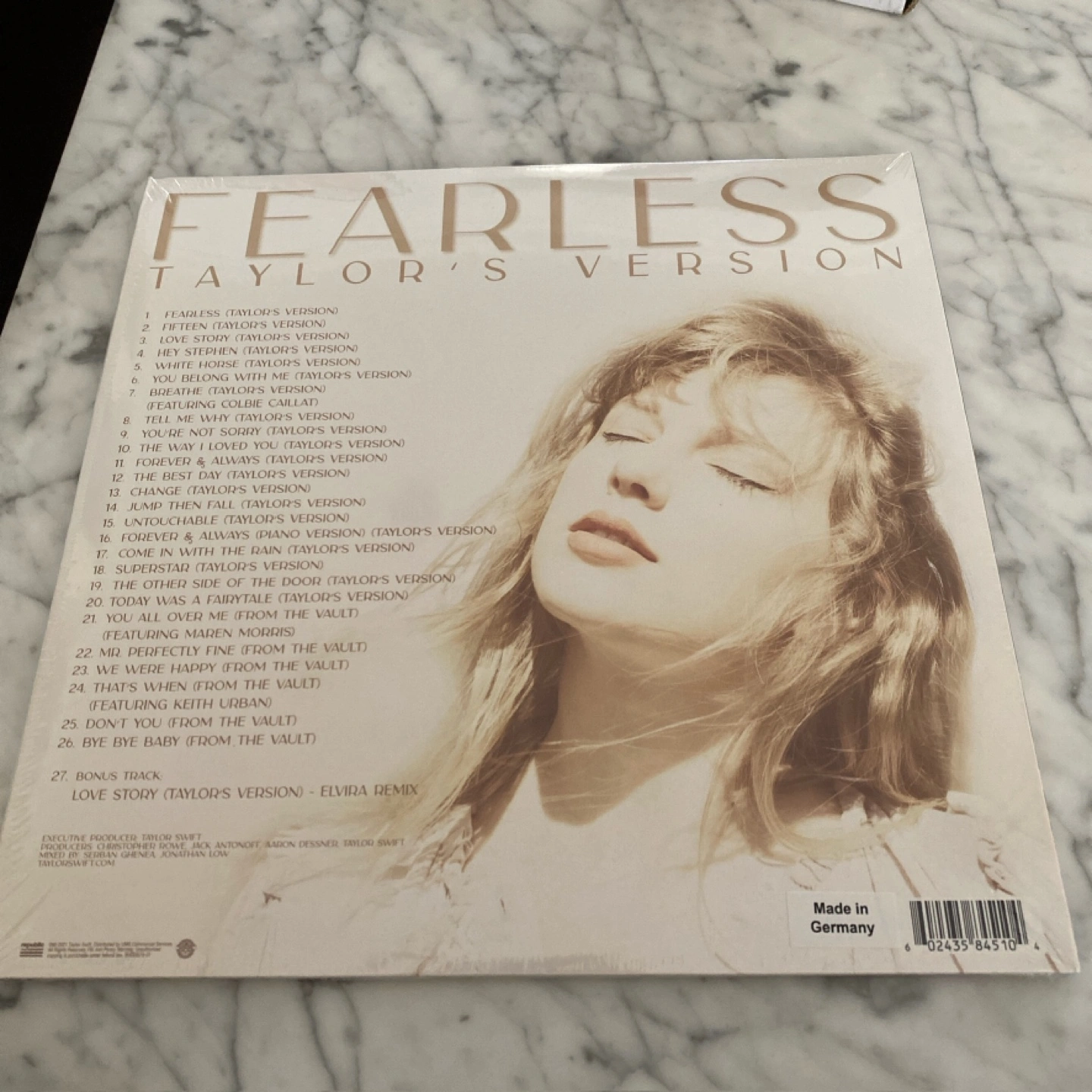 Selling a sealed copy of Taylor Swift's Fearless (Taylor's Version) vinyl LP! Made in Germany, this record is ready to spin and bring back all the feels from the vault. Perfect for any Swiftie looking to add to their collection! Asking $40 Pickup in Woodside queens or local meet ups/deliveries (must pay asking for delivery)