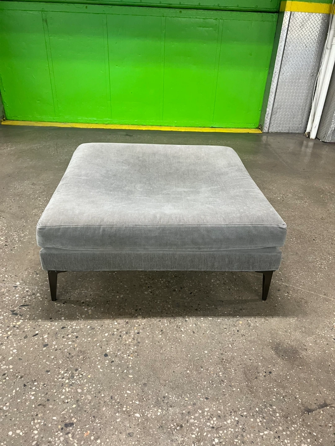 Elevate your space with this sleek, modern West Elm Andes Ottoman. Featuring a clean design, crisp tailoring, and stylish cast metal legs, this piece adds an airy, sophisticated touch to any room
