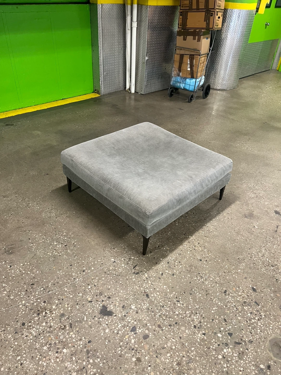 West Elm Andes Ottoman | Mineral Grey Velvet - FREE DELIVERY