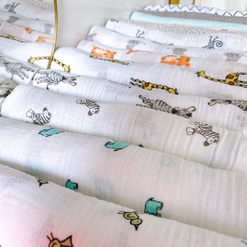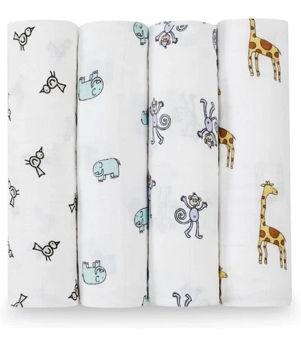 Aden + anais cotton muslin swaddles. Available prints: Donkey, Zebra, Mint Elephant, Giraffe, Bird, Monkey, Tiger, Baby Elephant. These are new and have been washed with Dreft Baby Detergent. They are breathable, soft, and comfy. Versatile for use as a stroller cover, burp cloth, nursing cover, and more. We do not accept returns. Items must be in their original, unopened condition. Damaged goods are not accepted, except under warranty for defects. Thank you for stopping by.