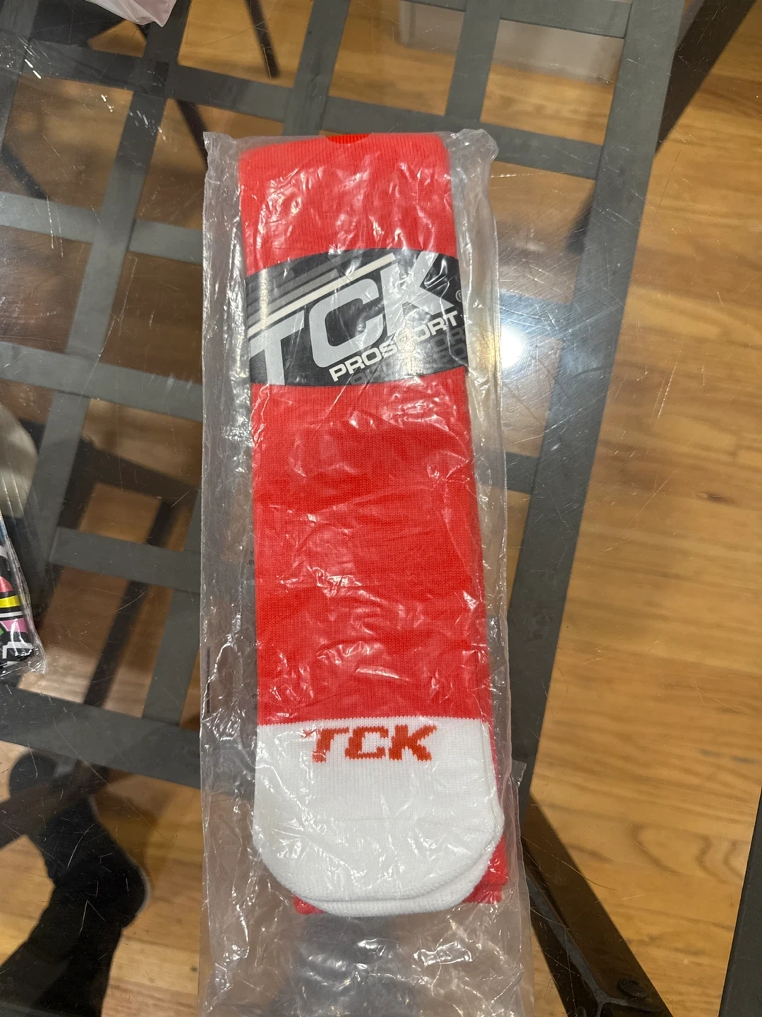 70Here are some new TCK ProSport socks in orange, size L! They offer superior durability and a performance fit. They also have a double welt top, a smooth toe seam, and a white toe for player ID