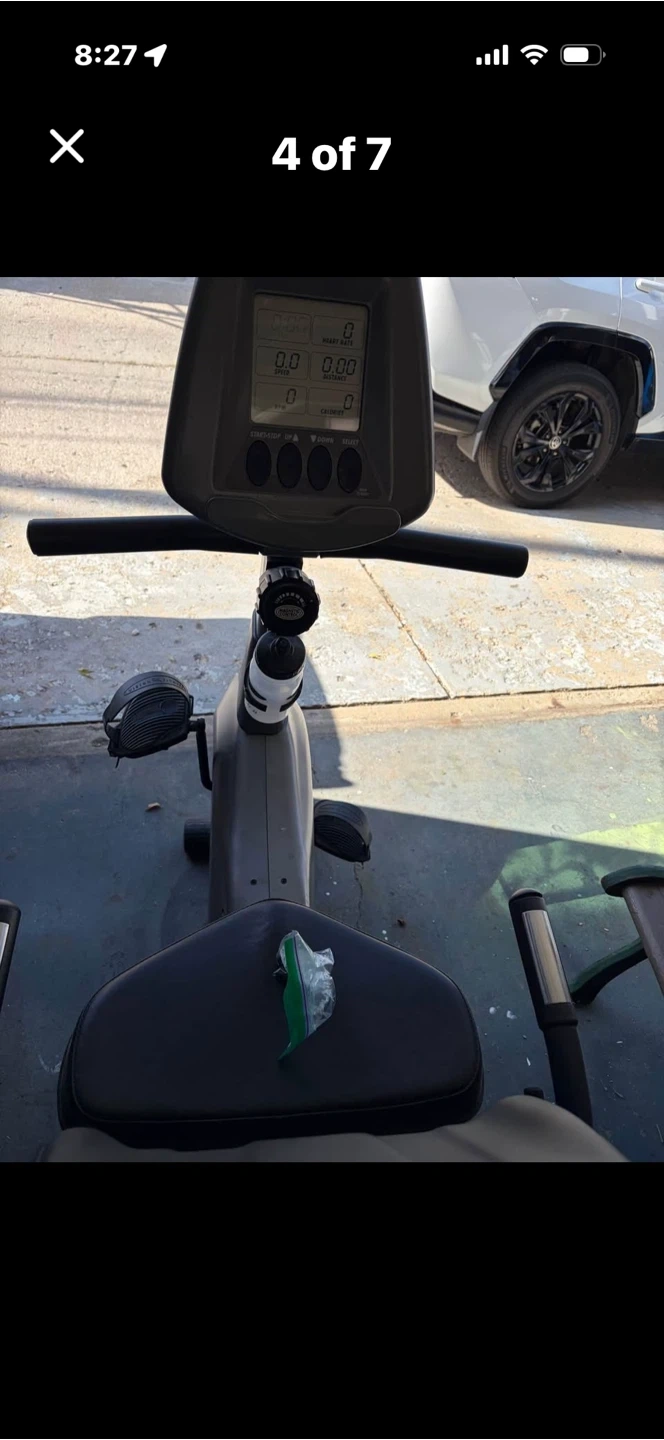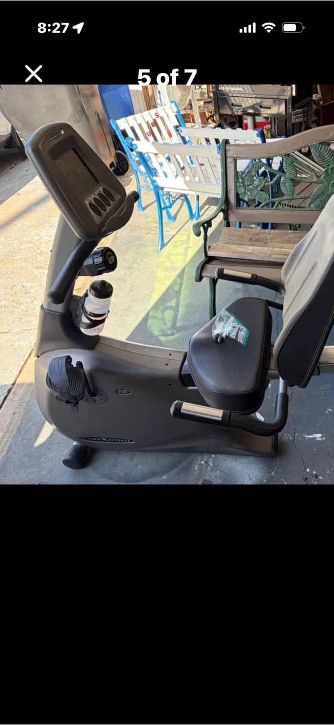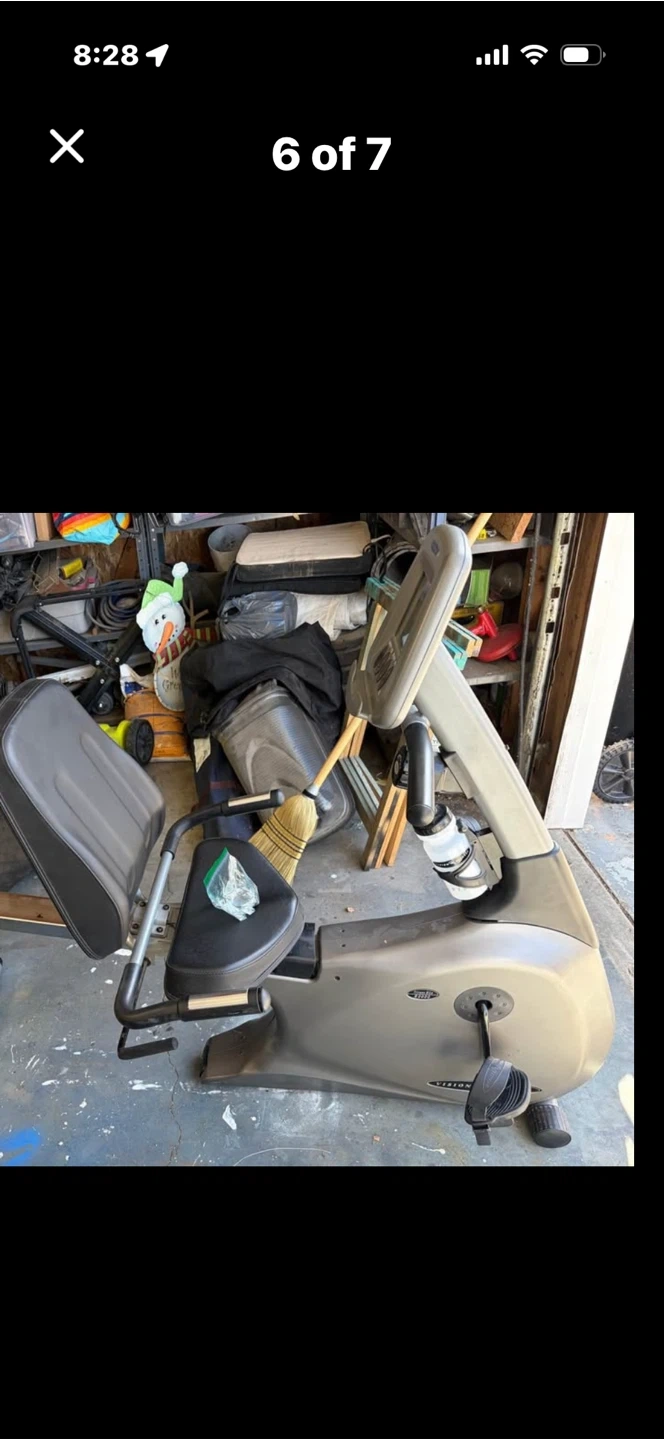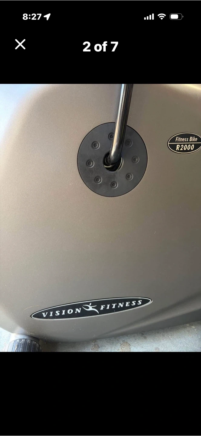 This is a Vision Fitness R2000 recumbent exercise bike. It's a great machine for at-home workouts. It has a comfortable seat and adjustable resistance.