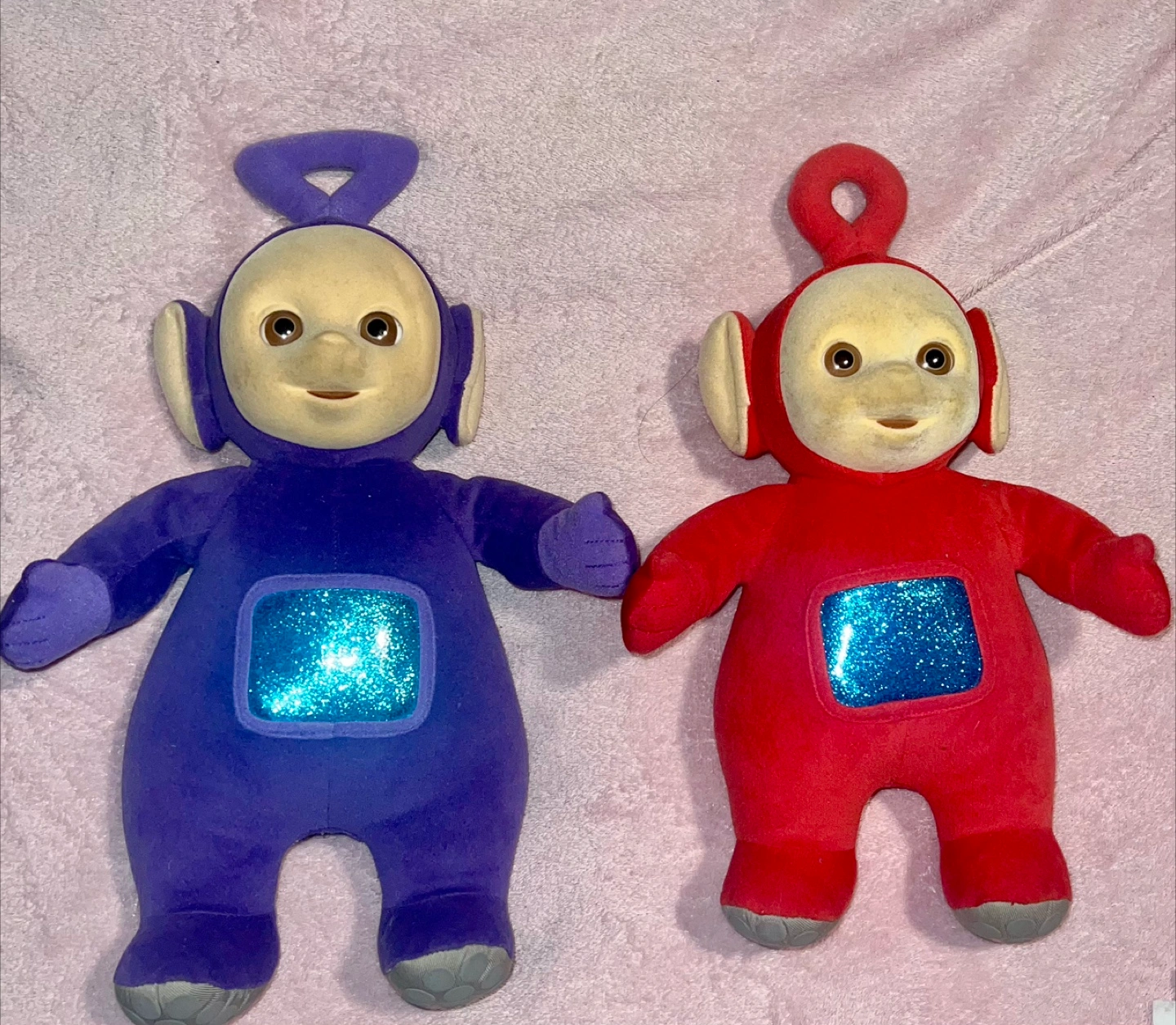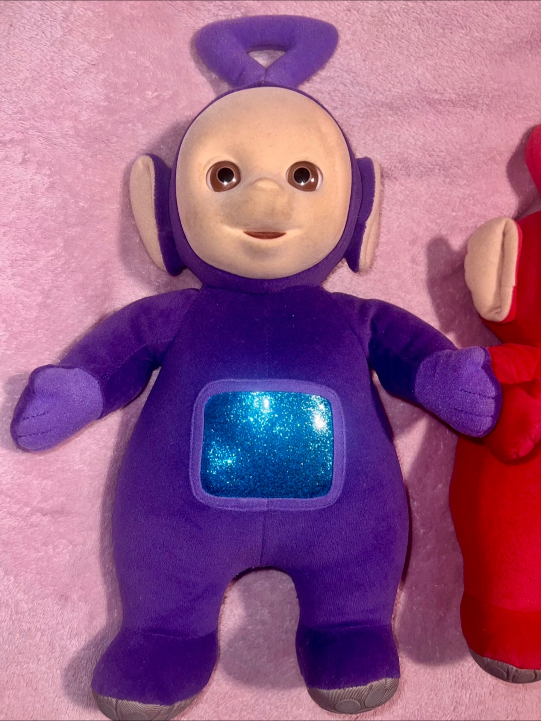 60Selling a pair of Authentic-Vintage Teletubbies plush toys! One is 16 inch Tinky Winky (purple) and the other is 12 inch Po (red). Both are in good condition and ready for a new home.