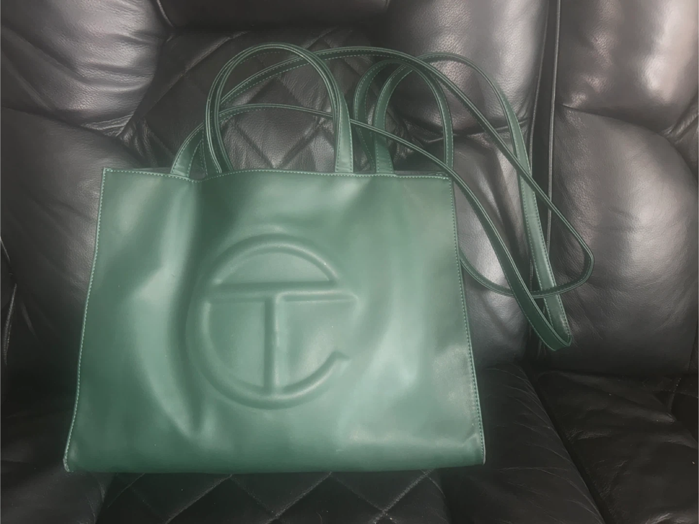 Selling a Telfar shopping bag in the medium size. The color is a beautiful dark green. It's in great condition and ready for a new home!