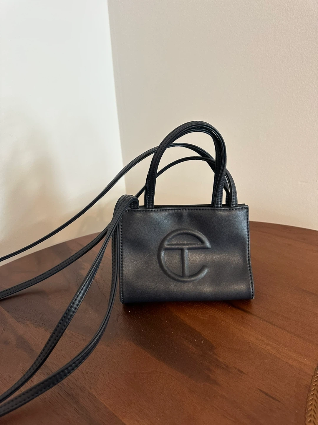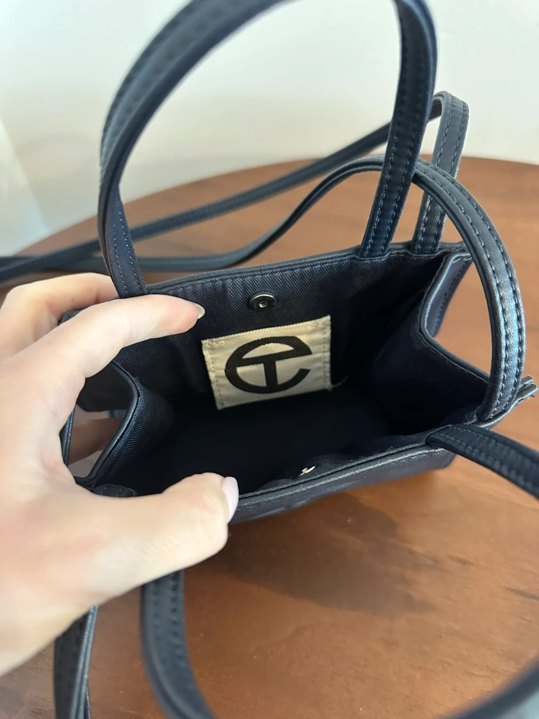 73Selling a cute Telfar small shopping bag in Navy! It's in great condition and perfect for everyday use. The bag features the signature Telfar logo embossed on the front. It's a stylish and practical accessory! Barely used !