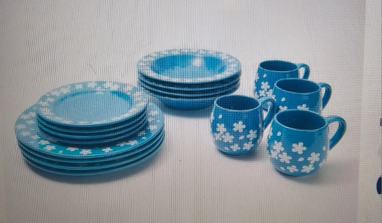 Blue and white floral design. Includes plates and mugs. 16 piece dish set in the box brand new never used temptations by QVC