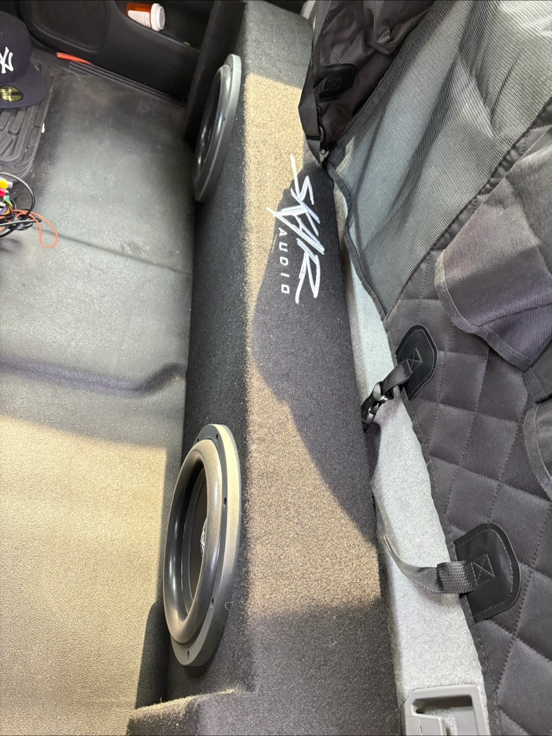 dual ten inch subs not blown out they’re basically new only had them for 2 months. subs lay under the back seats perfect fit. amp has a scratch on the surface but still works properly. i also have all the wires to go along with the subs and amp. if you have any questions send a message i’m not in a rush to sell these. if it’s still up it’s still available!!