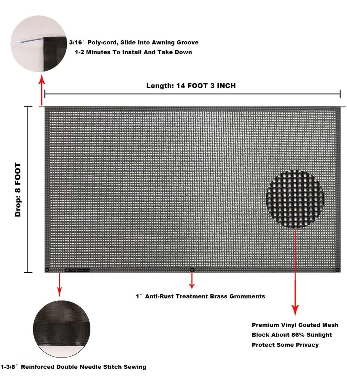 Tentproinc RV Awning Sun Shade Screen 8' X 14' 3''
