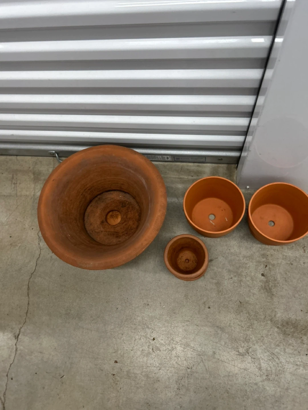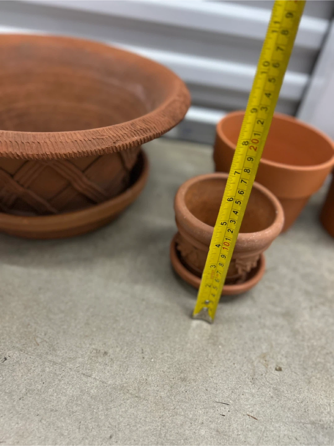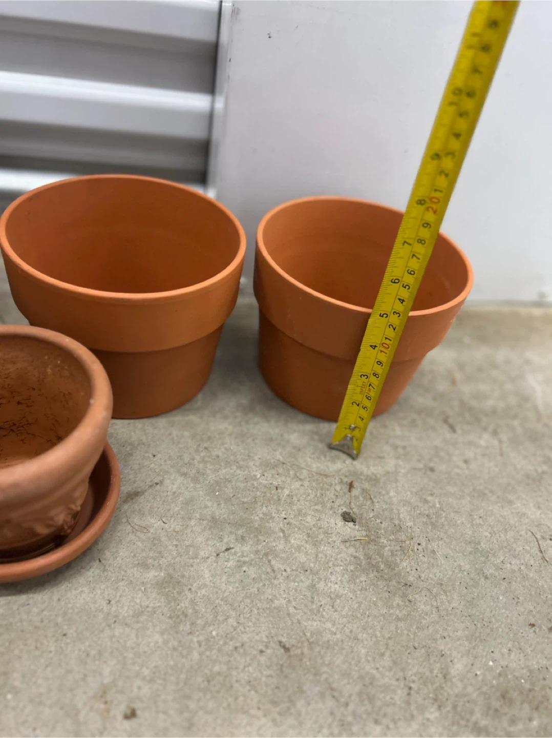 Selling a set of terracotta clay pots in various sizes. Perfect for starting a garden or adding some greenery to your space! They show some signs of use but are in good condition overall.included all