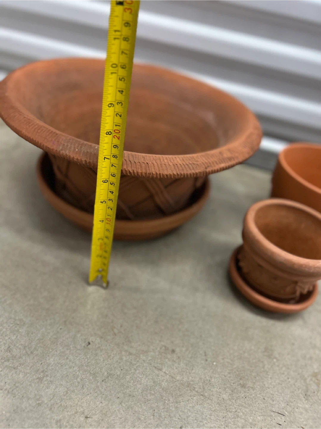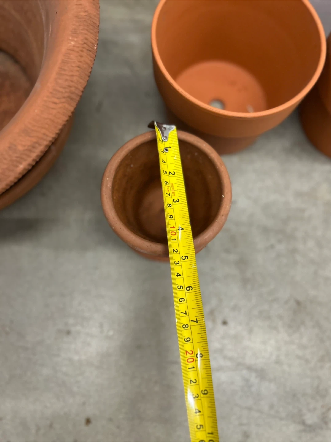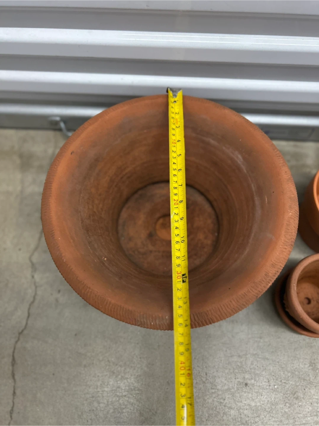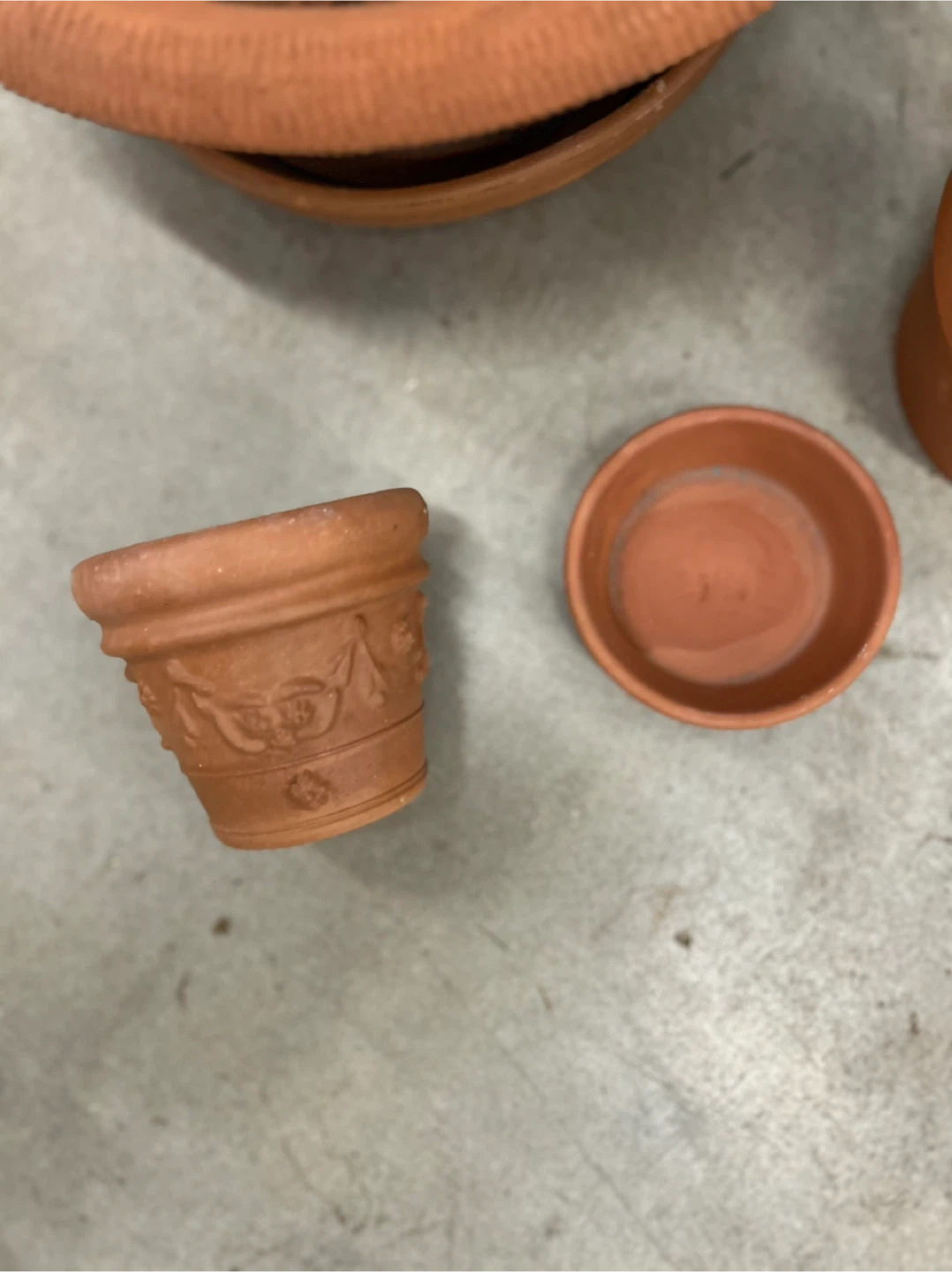 Selling a set of terracotta clay pots in various sizes. Perfect for starting a garden or adding some greenery to your space! They show some signs of use but are in good condition overall.included all