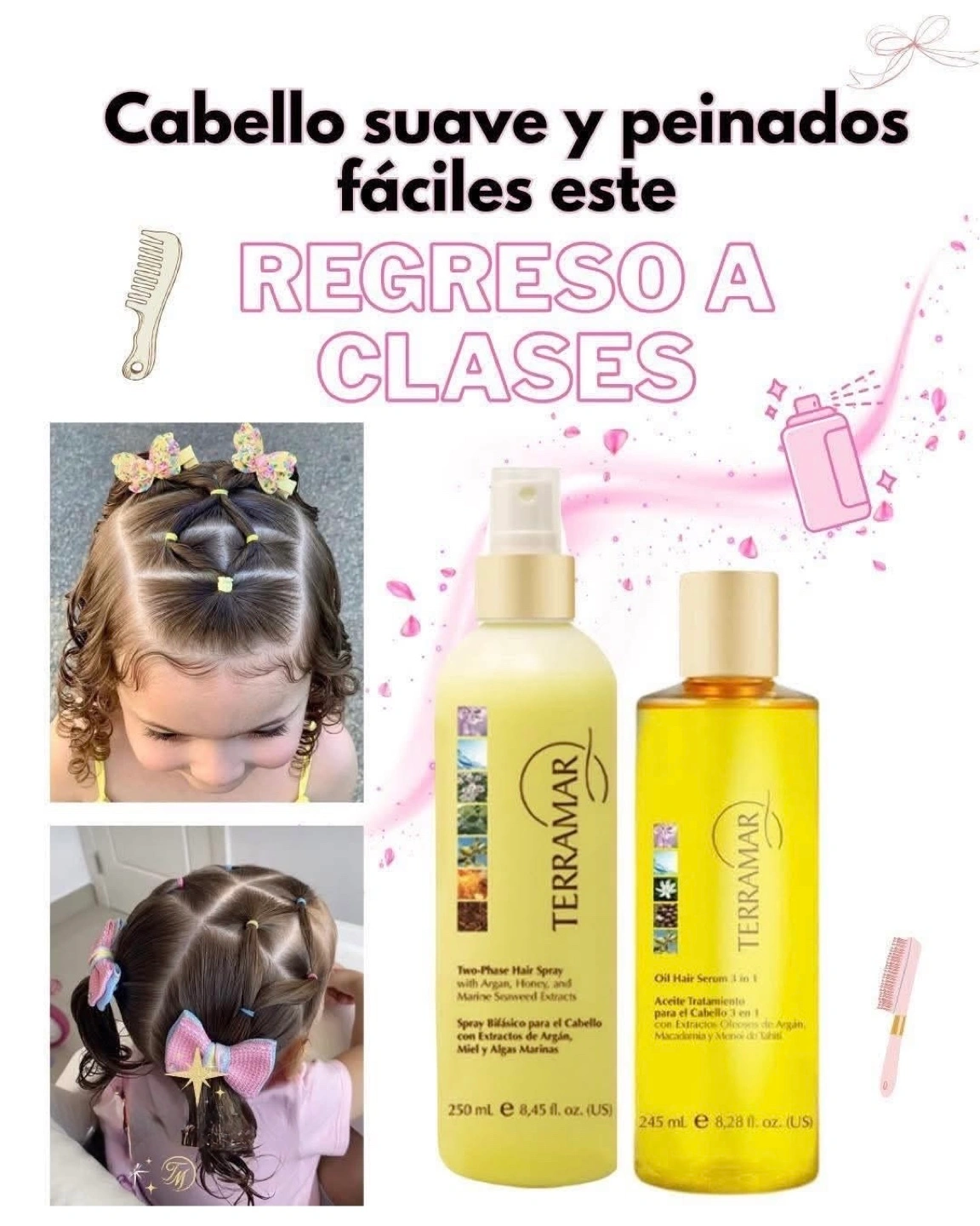 I'm selling a variety of Terramar hair products. They include: - Two-Phase Hair Spray with Argan, Honey, and Marine Derived Extracts (250 ml) - Oil Hair Serum 3 in 1 (245 ml) - Scalp Scrub with Strawberry Seeds and Marine Algae (140 g) - Concentrated Serum for Damaged Ends