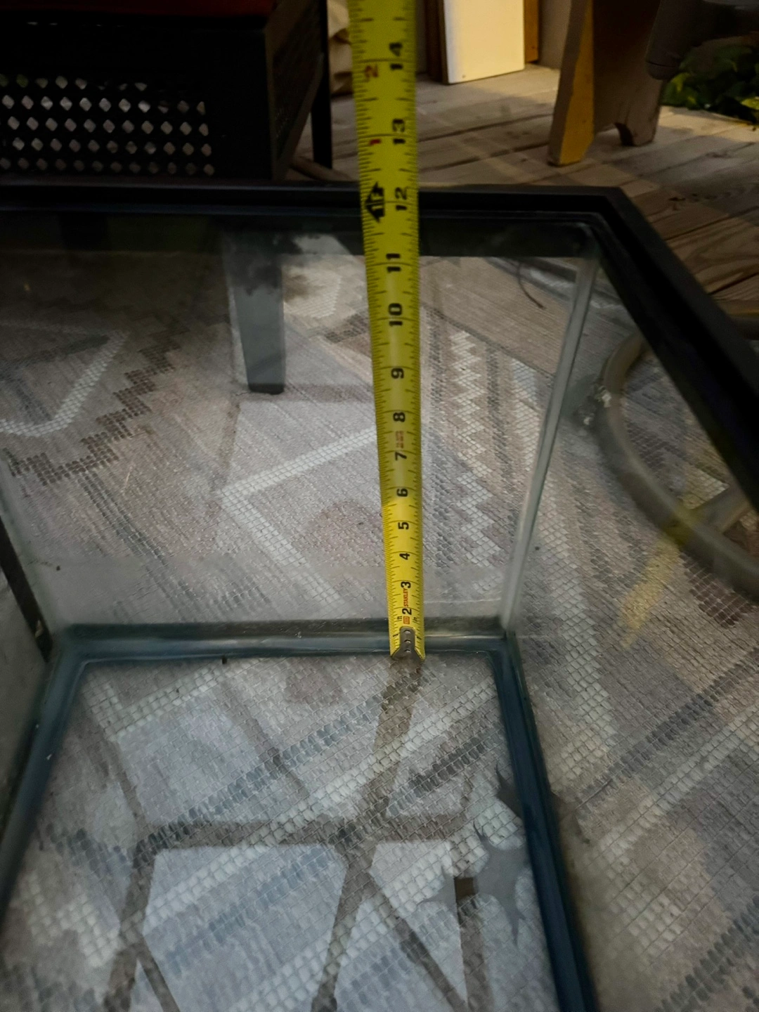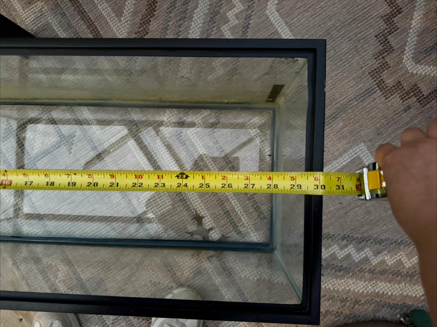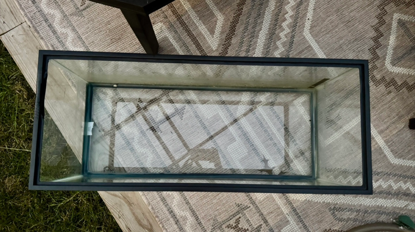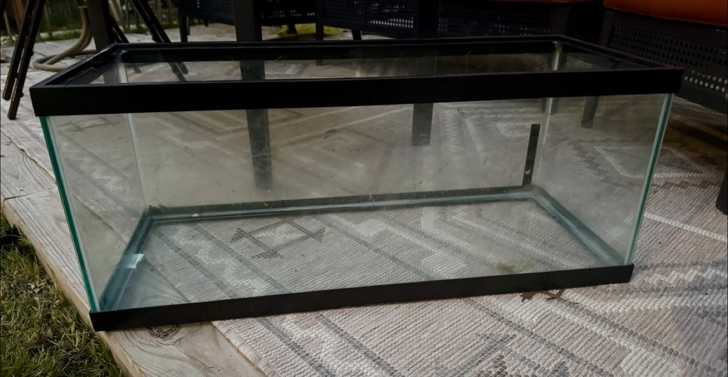 Selling a used fish tank. The dimensions are approximately 30 inches long, 12 inches wide, and 12 inches tall. 20 gallons.