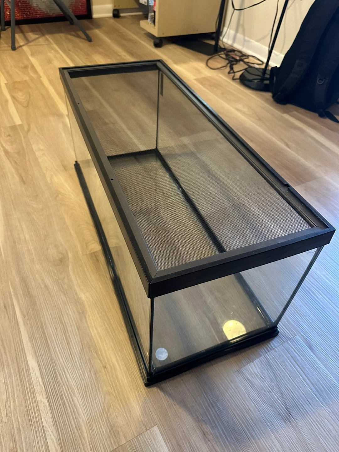 39Selling a terrarium with a black frame and a mesh top. It's in good condition and ready for a new reptile friend!